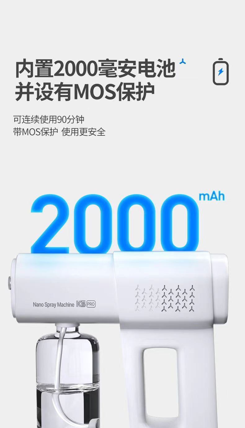 K5Pro беспроводной ручной дезинфицирующий пистолет-распылитель, бытовой распылитель для предотвращения эпидемий, цифровой стерилизатор для помещений, нанораспылитель с синим светом