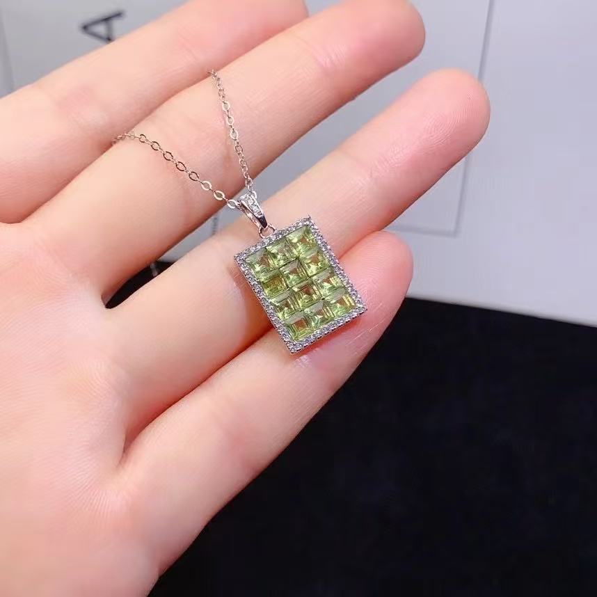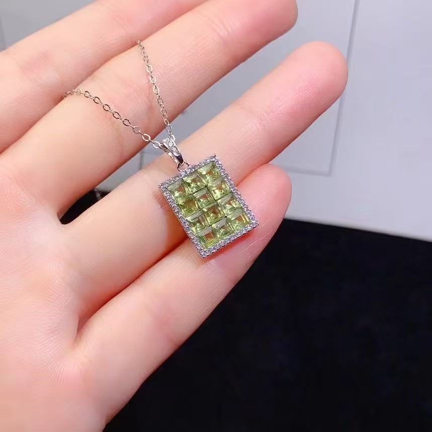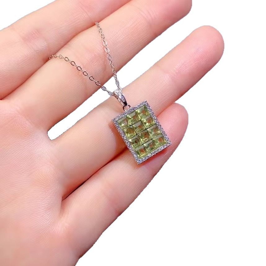 S925 Серебряный инкрустированный натуральный оливин ретро прямоугольный кулон Caibao минималистский модный основной камень 3*3