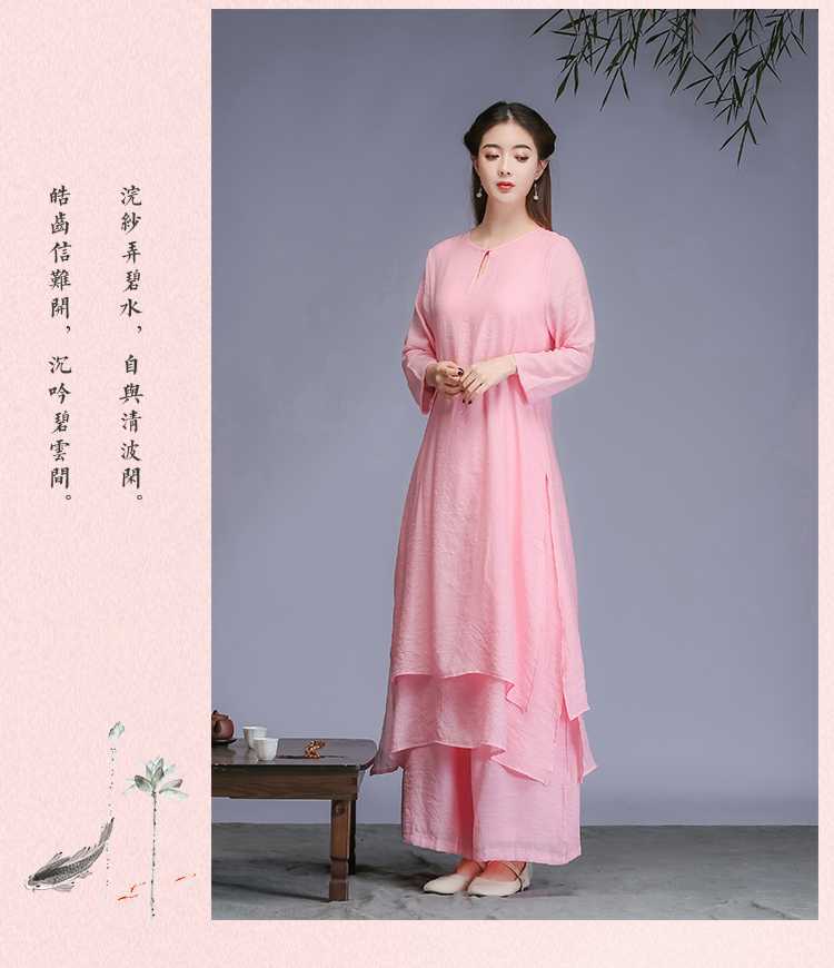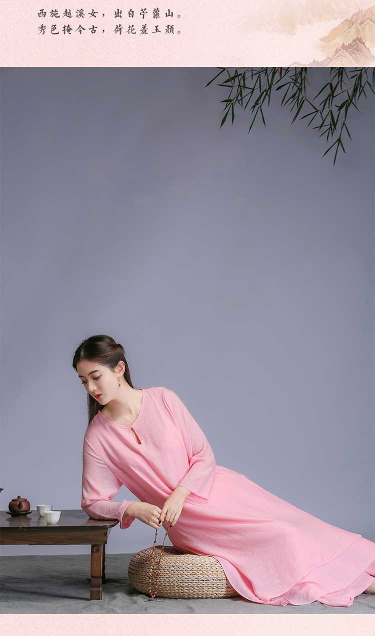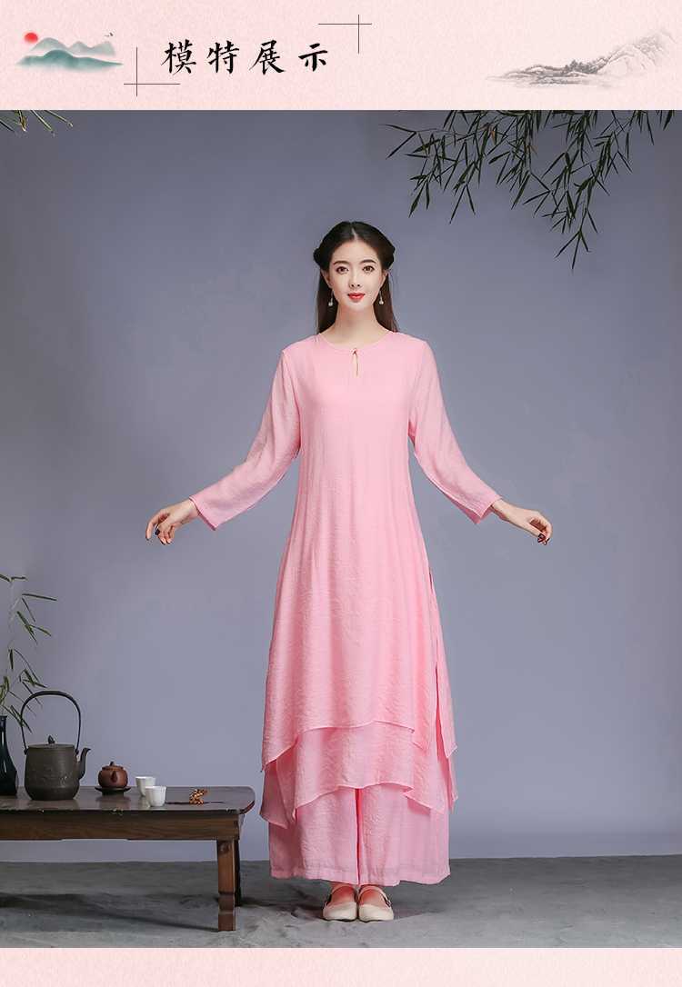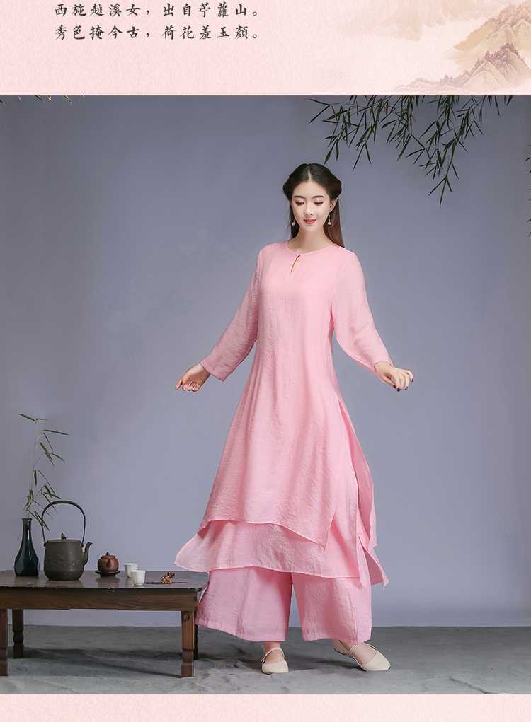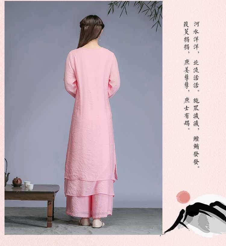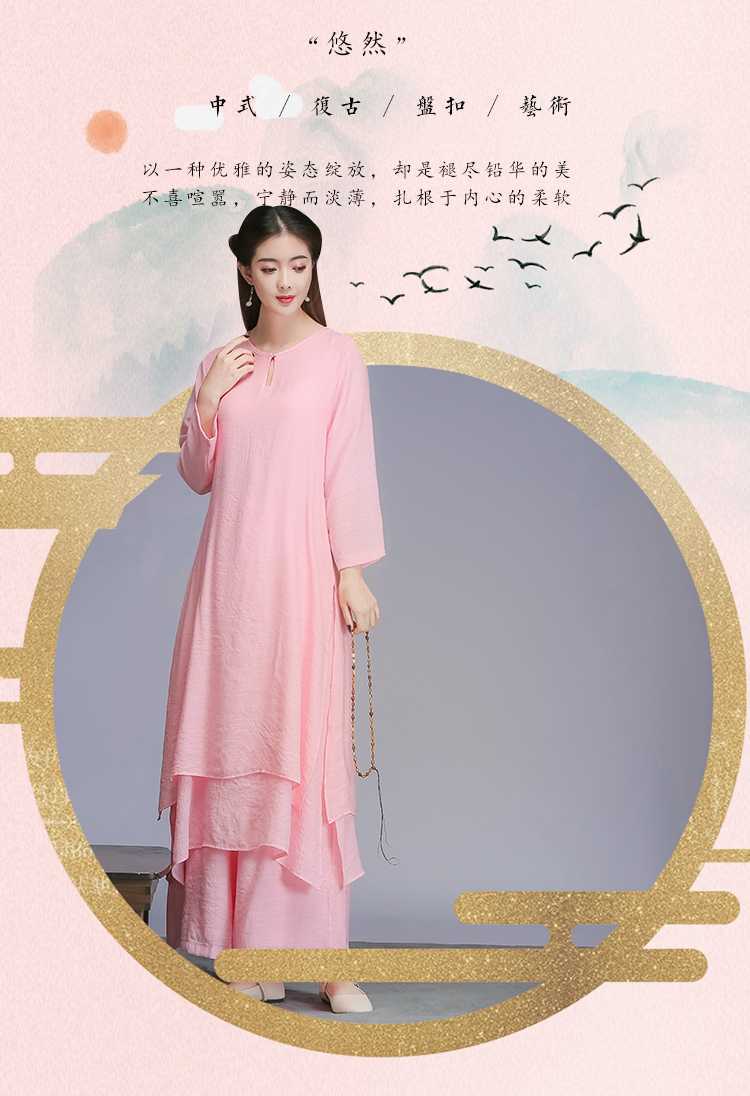 Настоящая фотография милого сказочного литературного ретро-этнического китайского чайного костюма в стиле дзен для женщин