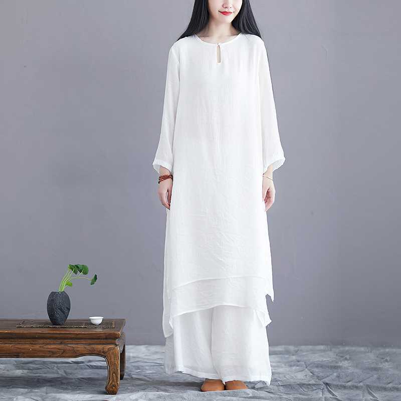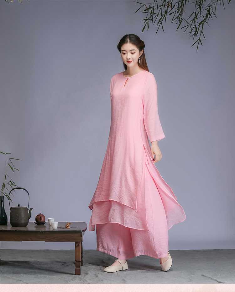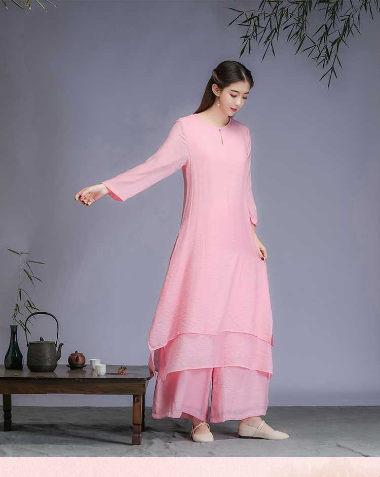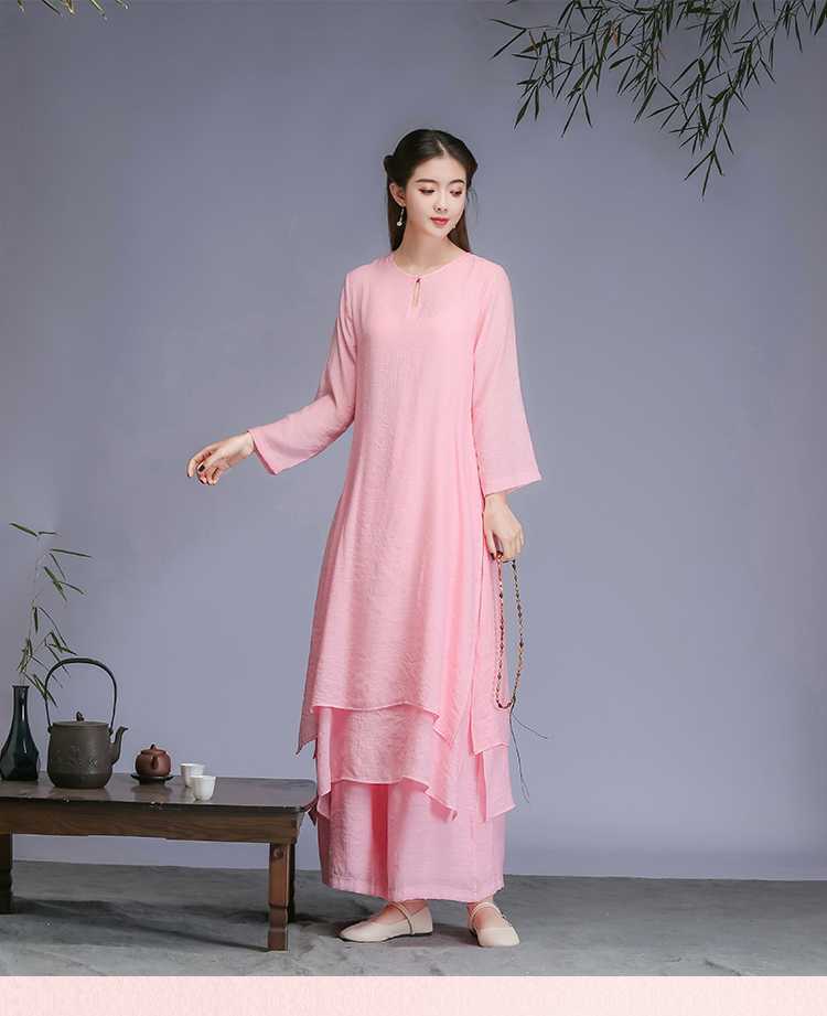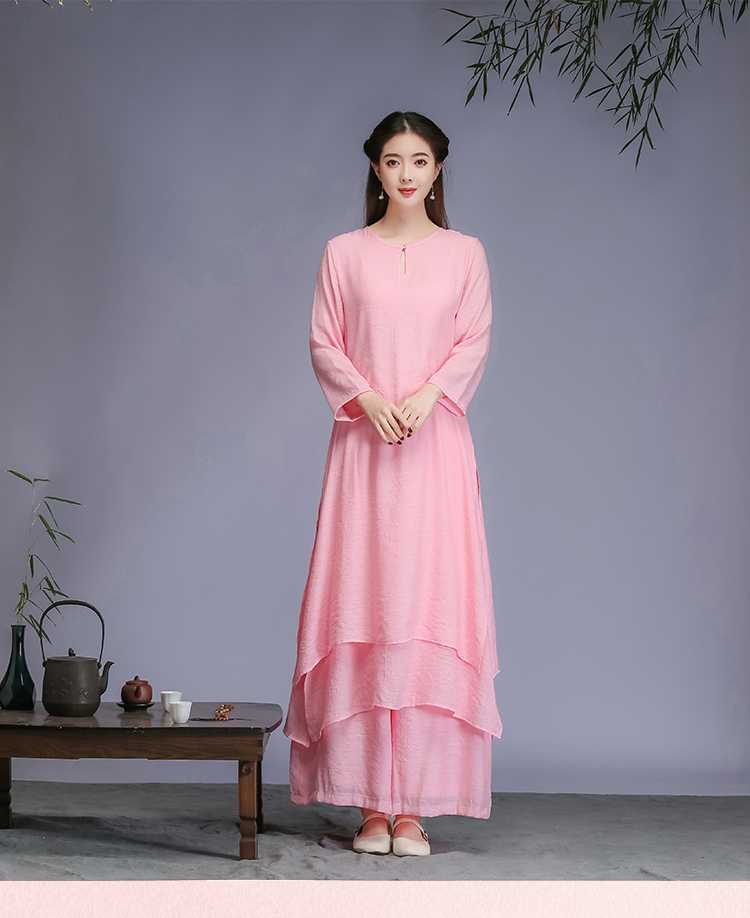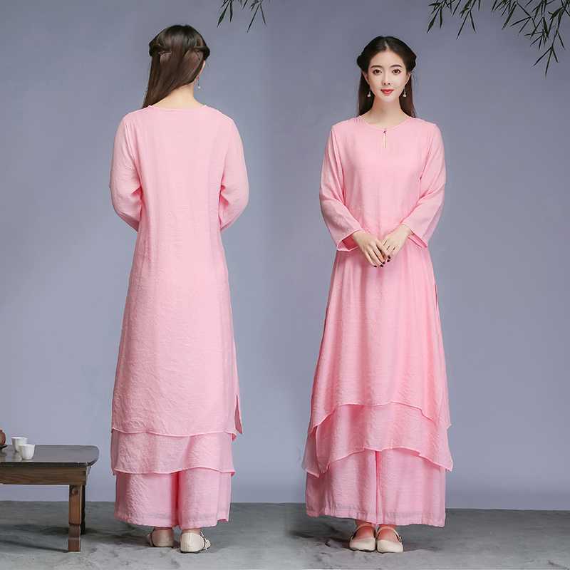 Настоящая фотография милого сказочного литературного ретро-этнического китайского чайного костюма в стиле дзен для женщин