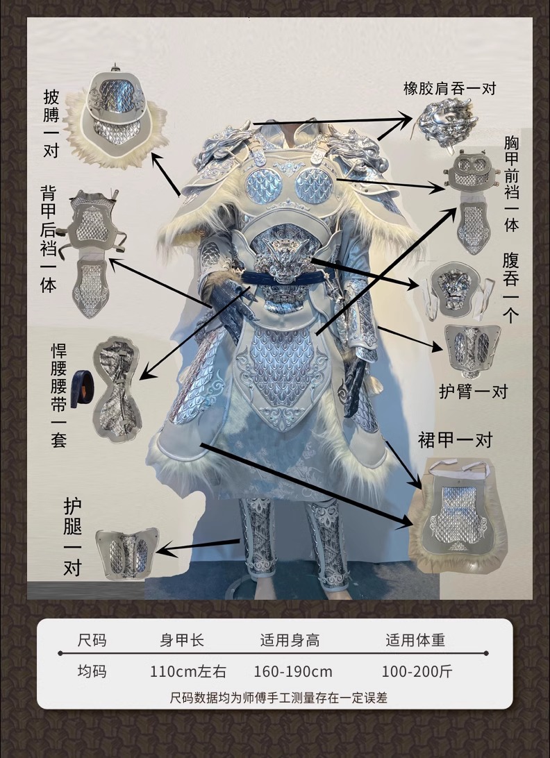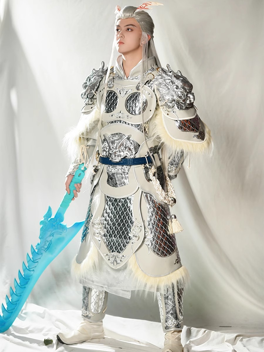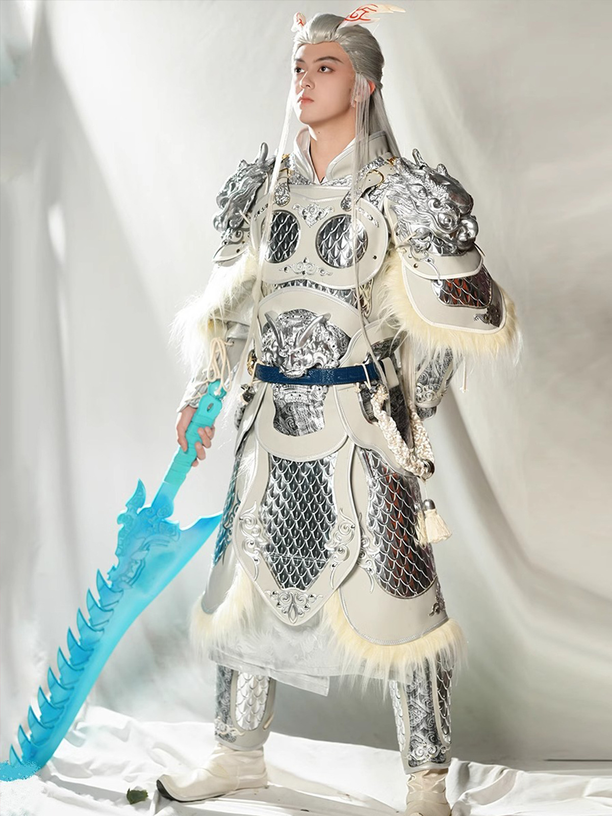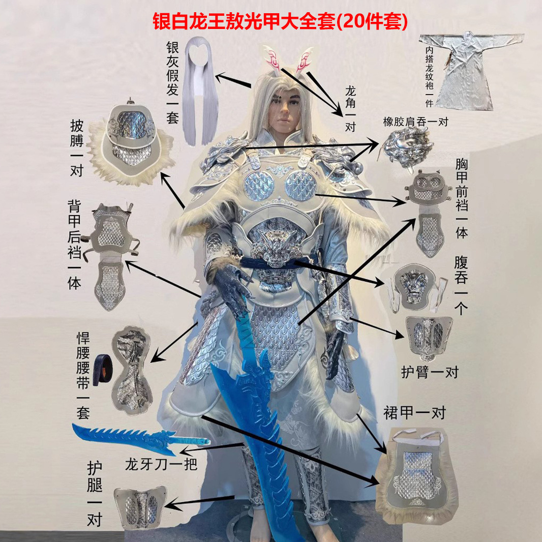 Набор доспехов Короля Серебряного Белого Дракона Ао Гуан; Полный комплект брони Короля Серебряного Белого Дракона Ао Гуан.
