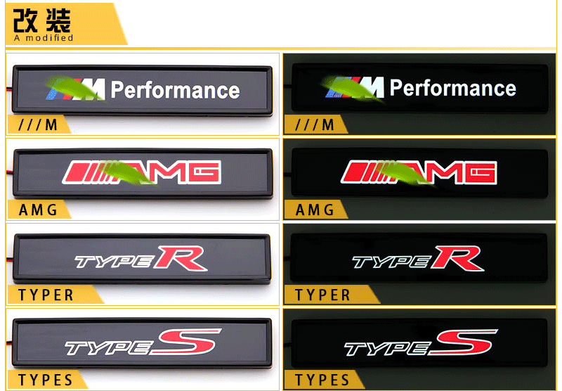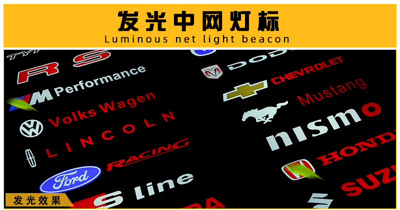 【商品名称】适用奔驰AMG宝马M奥迪大众TYPER无限雪佛兰现代中网发光改装灯标