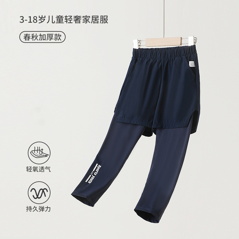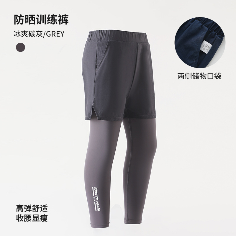 Детские поддельные две спортивные штаны с высокими пулями для мальчиков тренировочные брюки брюки весной и летом новые солнцезащитные брюки быстрого сушки