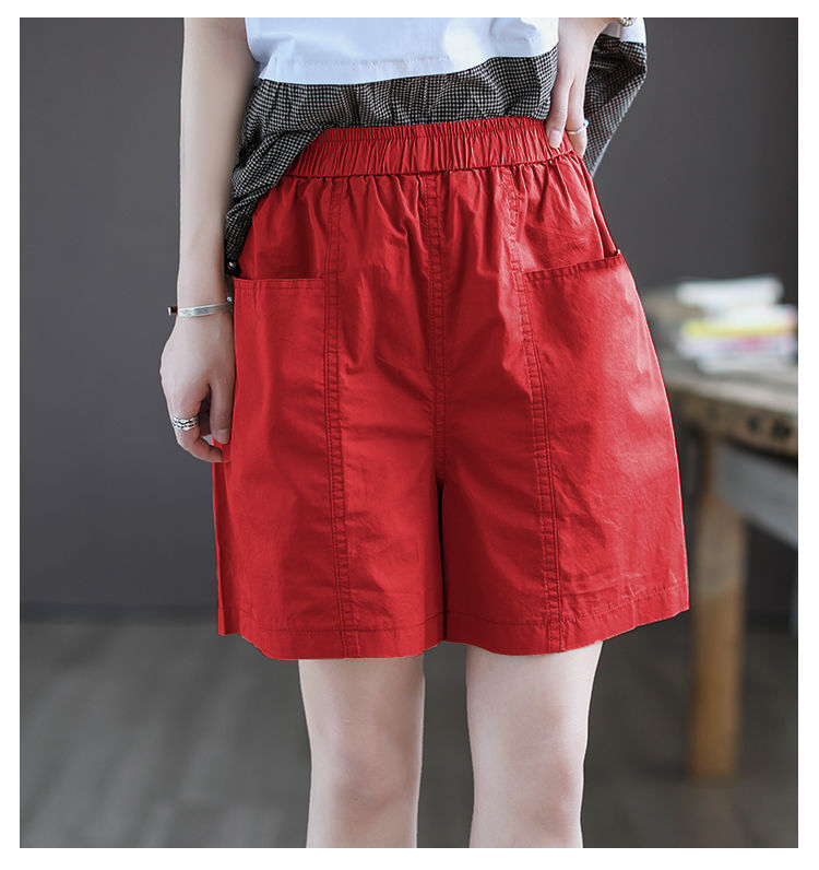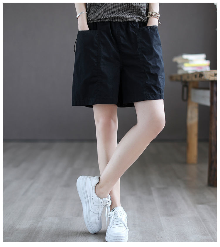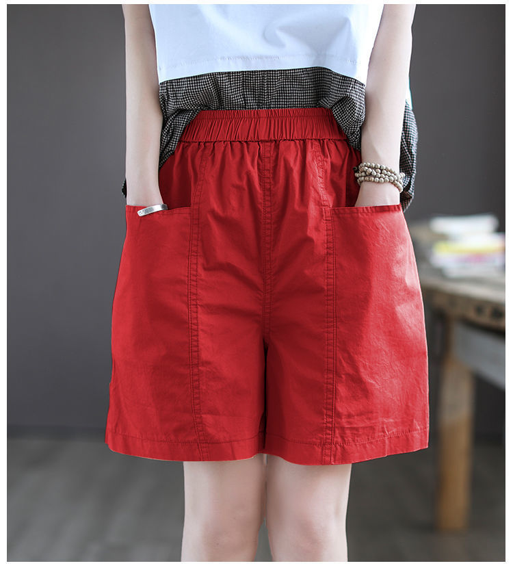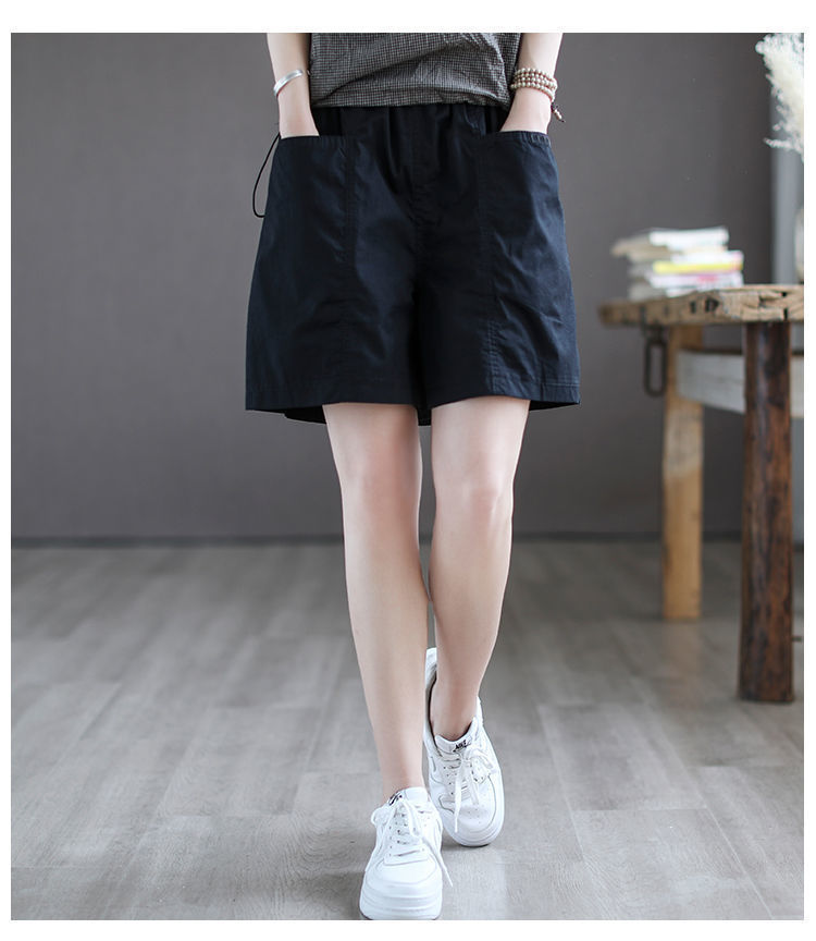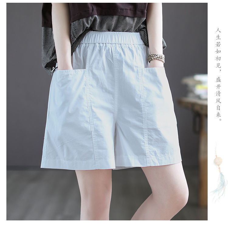 Высококачественные хлопчатобумажные широкие шорты женские новые большие размеры с высокой талией тонкая летняя повседневная свободная дикая пятиконечная комбинезонная брюка