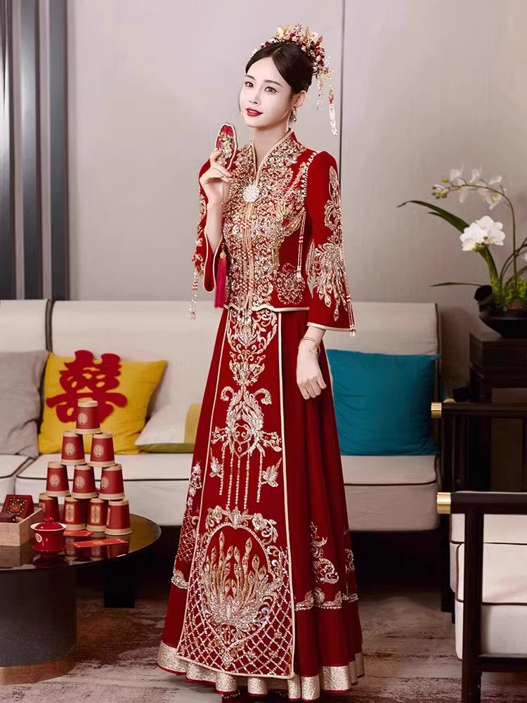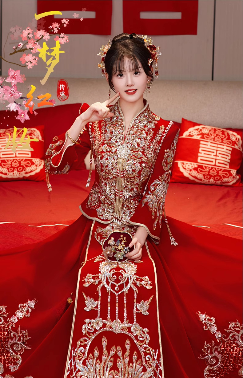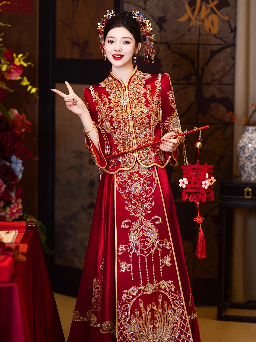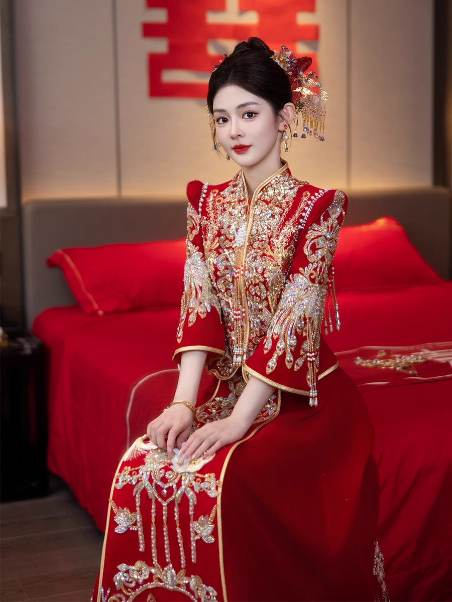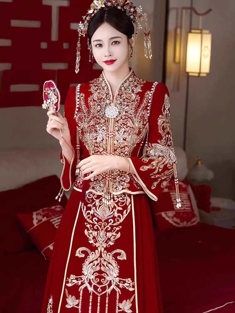 Тяжелый бархат Свадебная одежда Свадебная одежда 2025 новый свадебный китайский свадебный костюм