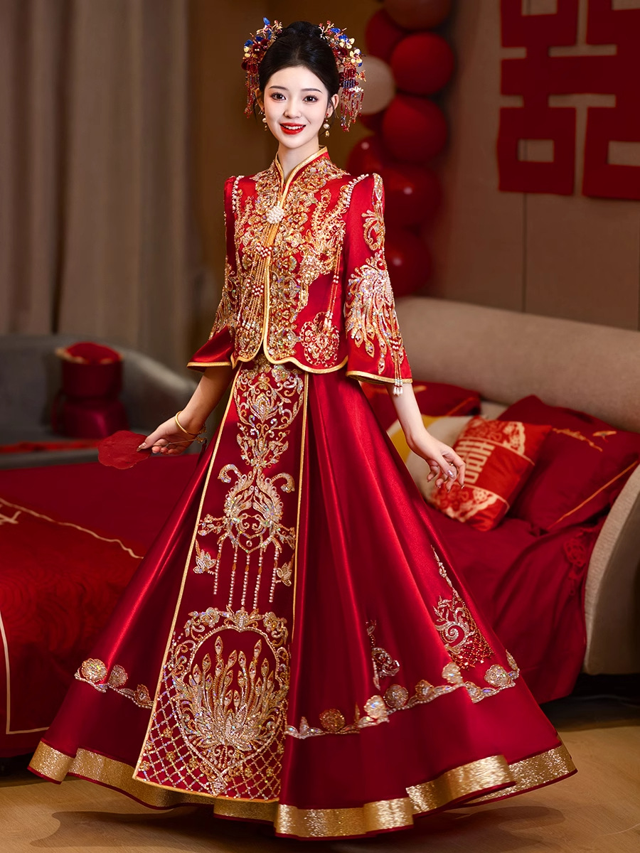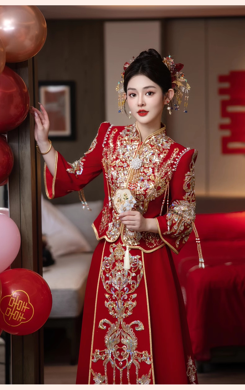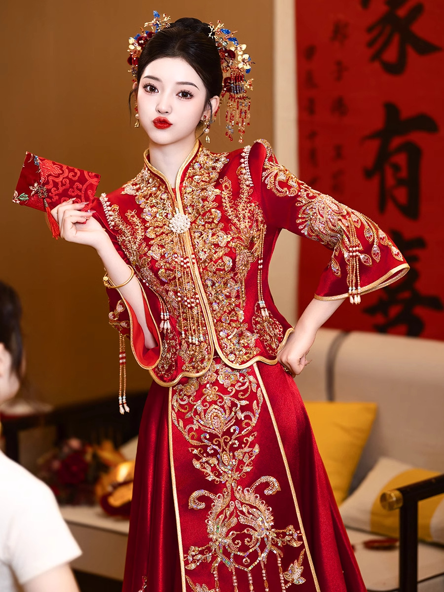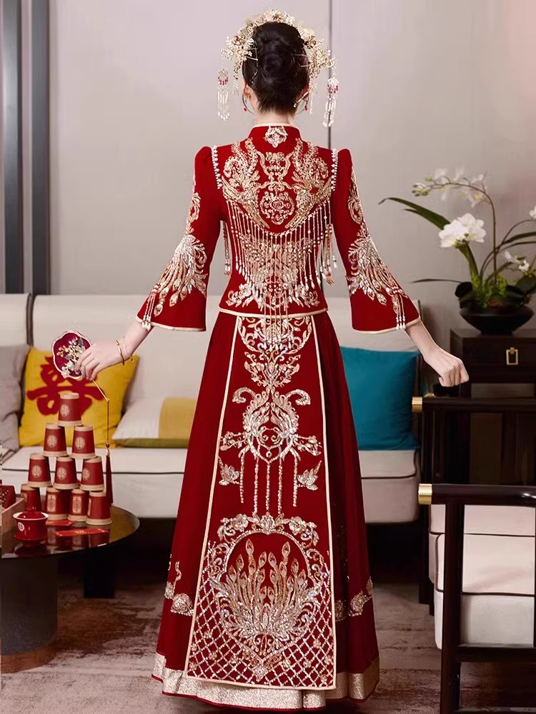 Тяжелый бархат Свадебная одежда Свадебная одежда 2025 новый свадебный китайский свадебный костюм