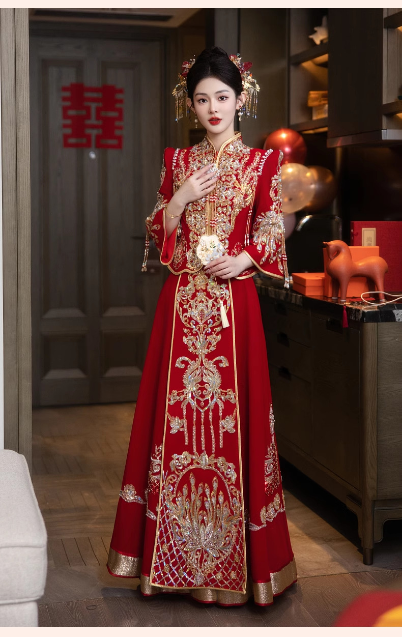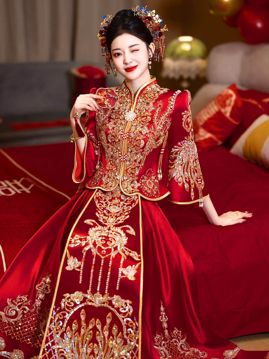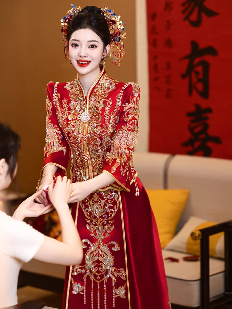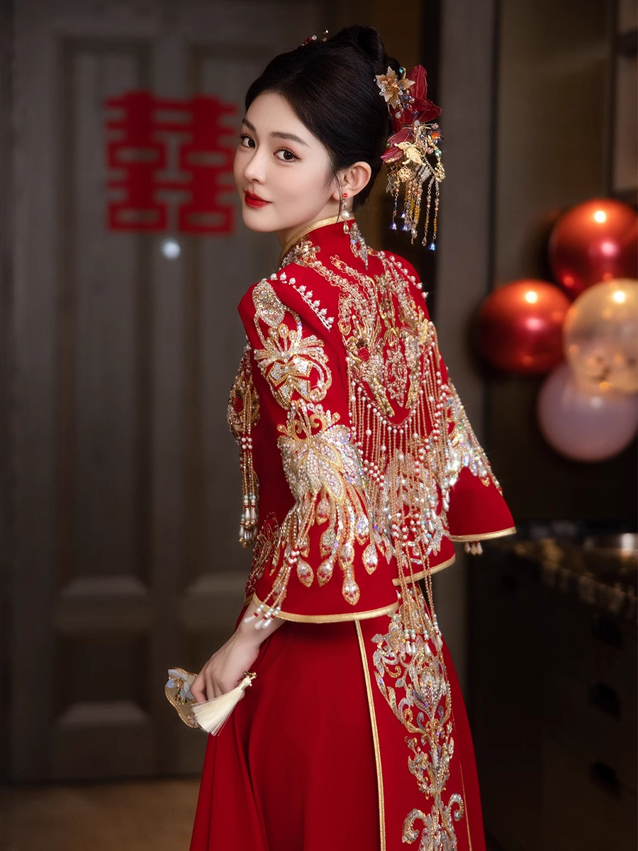 Тяжелый бархат Свадебная одежда Свадебная одежда 2025 новый свадебный китайский свадебный костюм