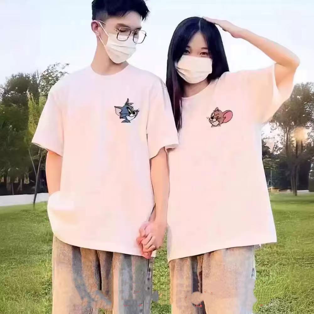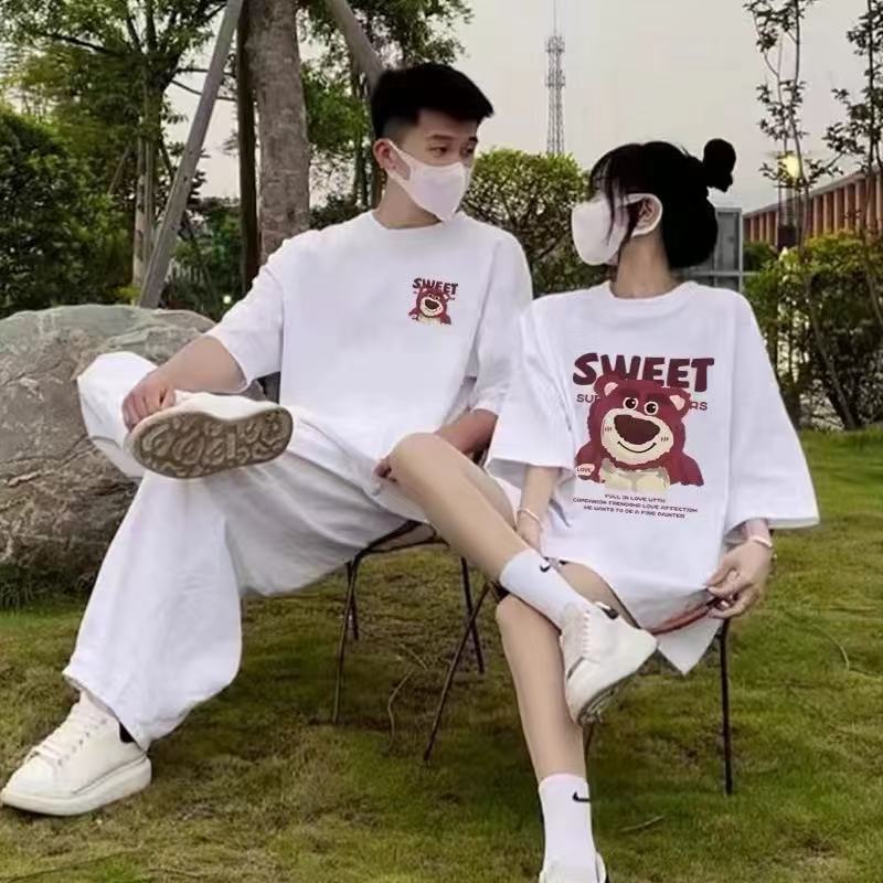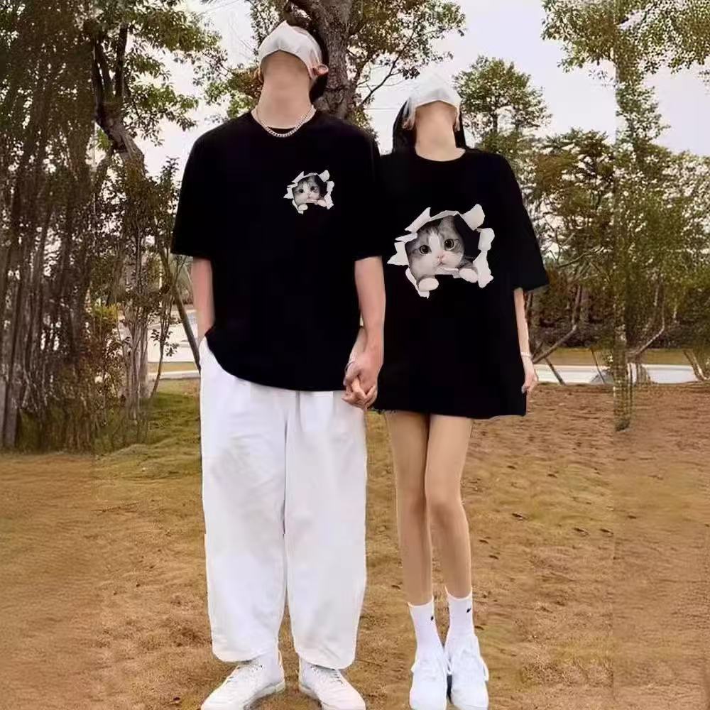 Летние парные наряды для одного мужчины и одной женщины, разные модные бренды, чистый хлопок, удобная повседневная одежда, чистый хлопок, приятные для кожи и дышащие футболки.