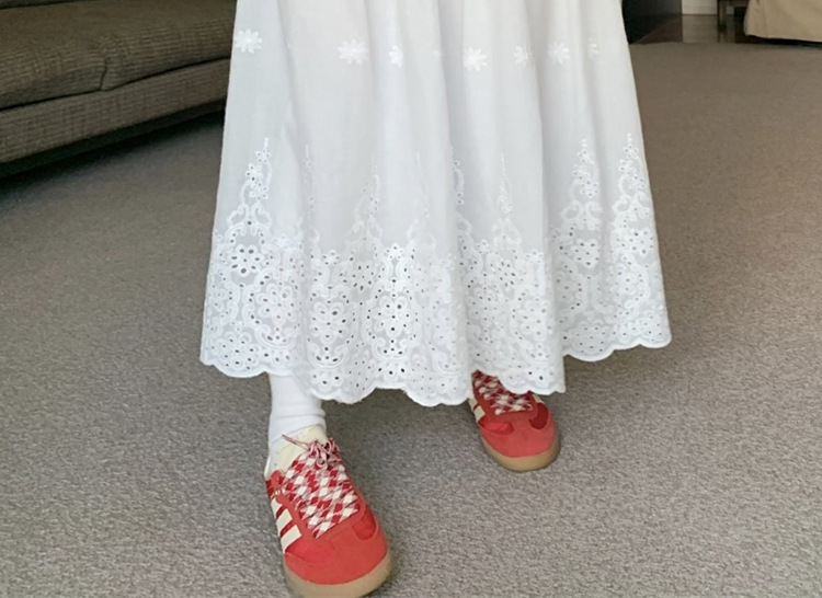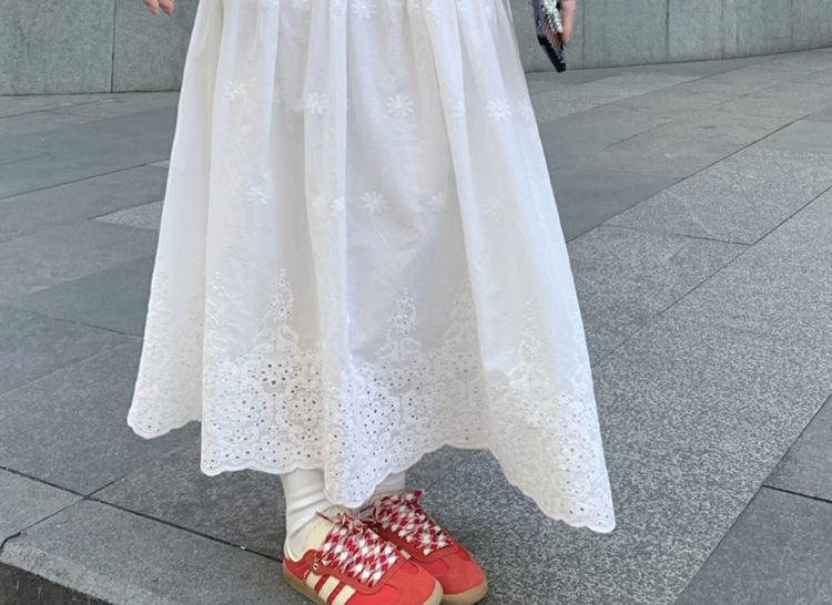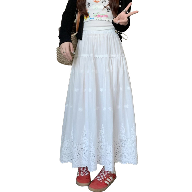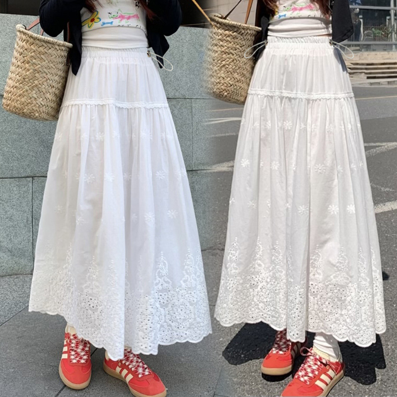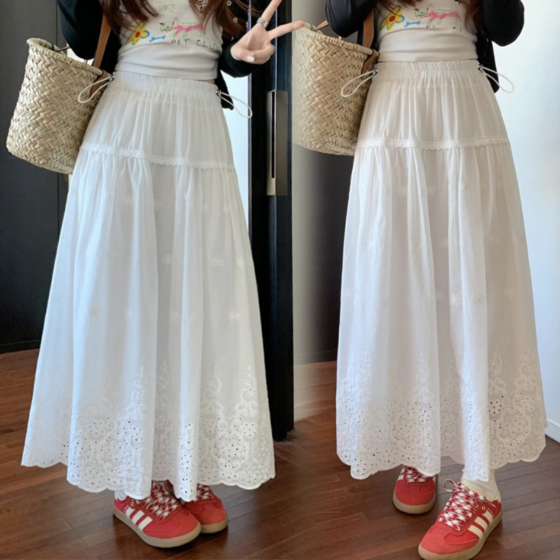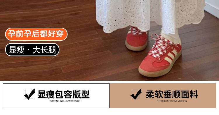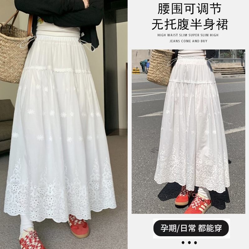 Юбка для беременных, кружевная юбка в корейском стиле для тяжелой промышленности, связанная крючком, женская белая юбка трапециевидной формы, длинная юбка