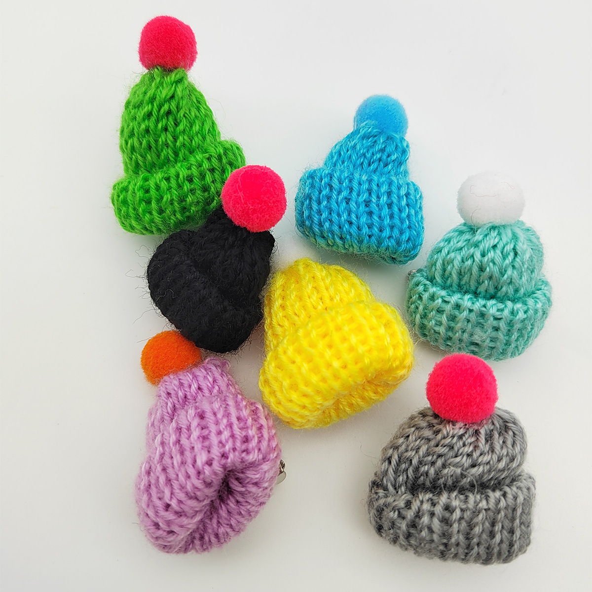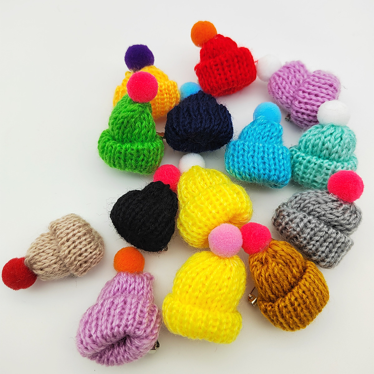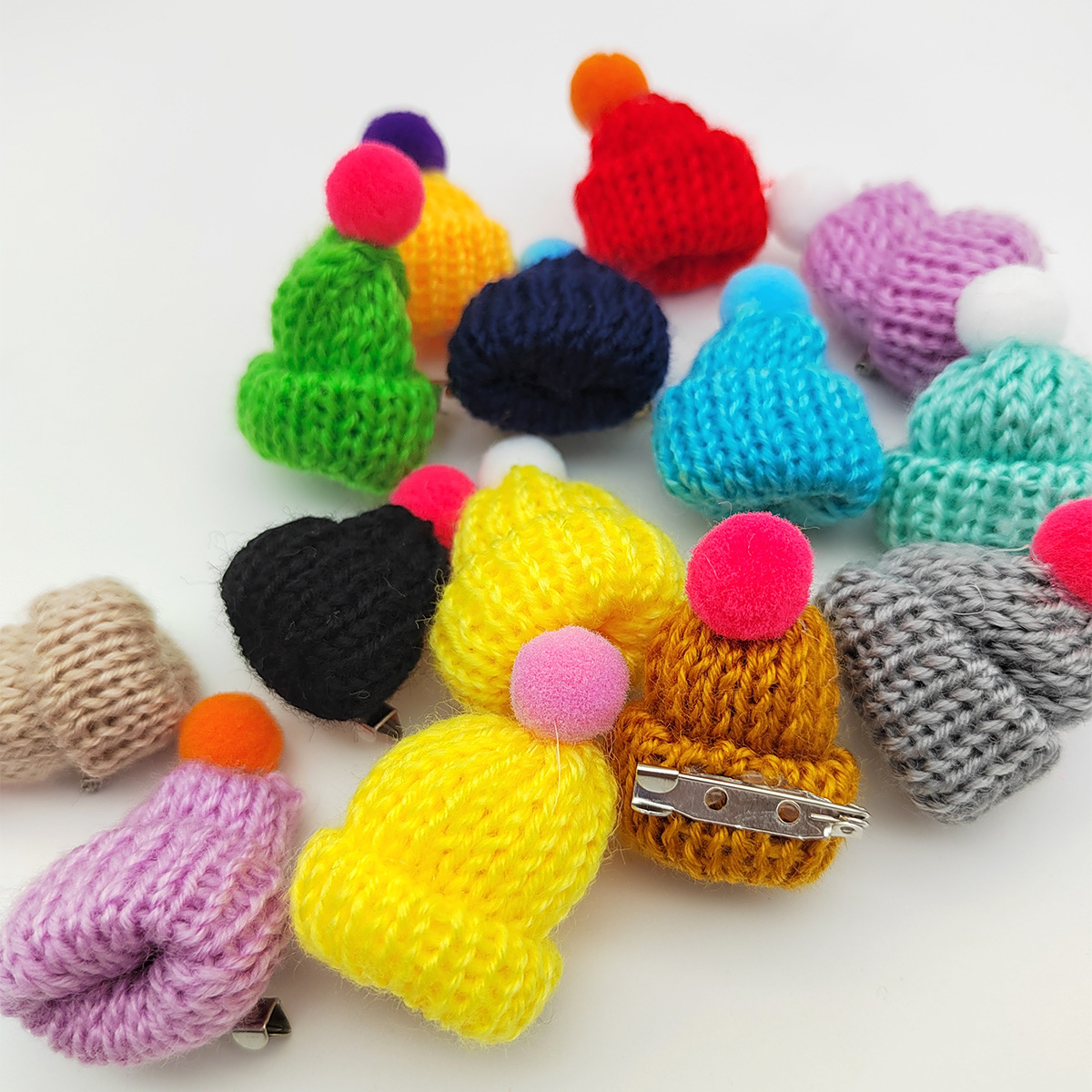 вязаная брошь с цветком; маленькая брошь вишня; брошка маленькая пчелка; брошь из мехового шара; маленькая шляпная брошь; Рождественская брошь-бантик
