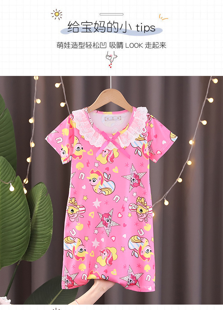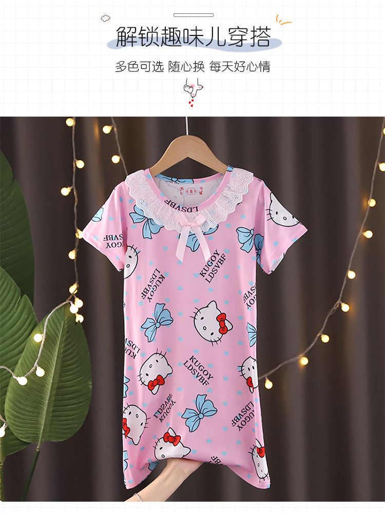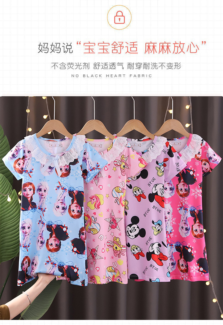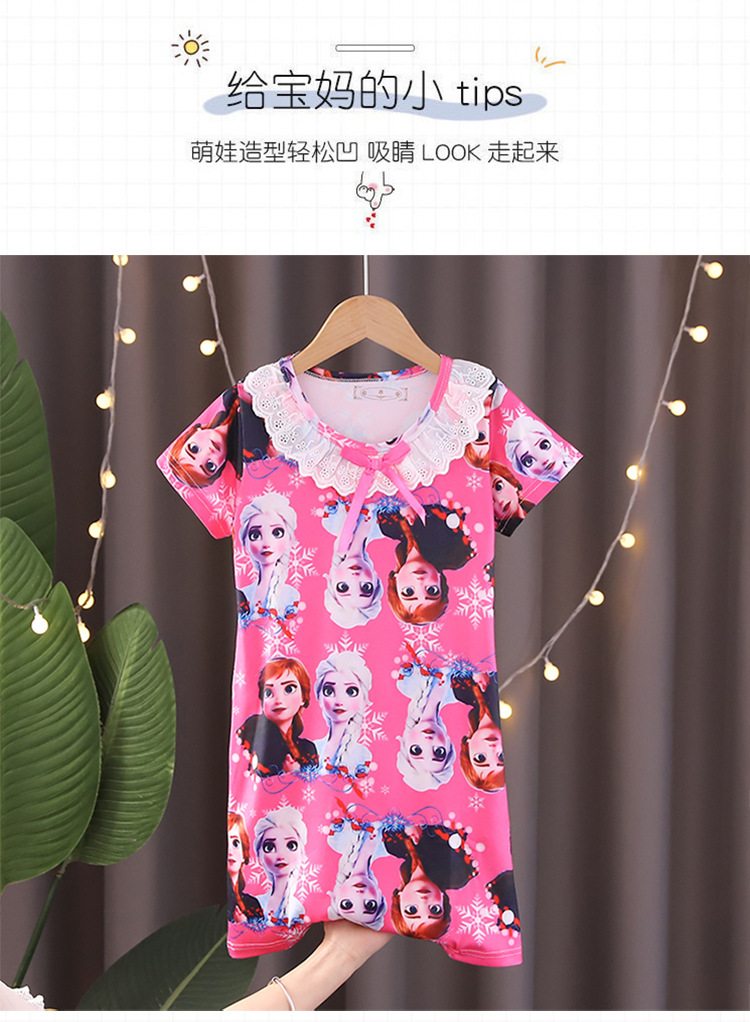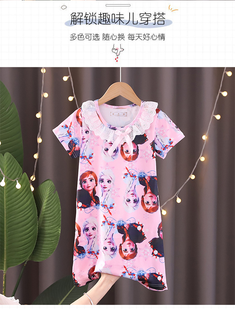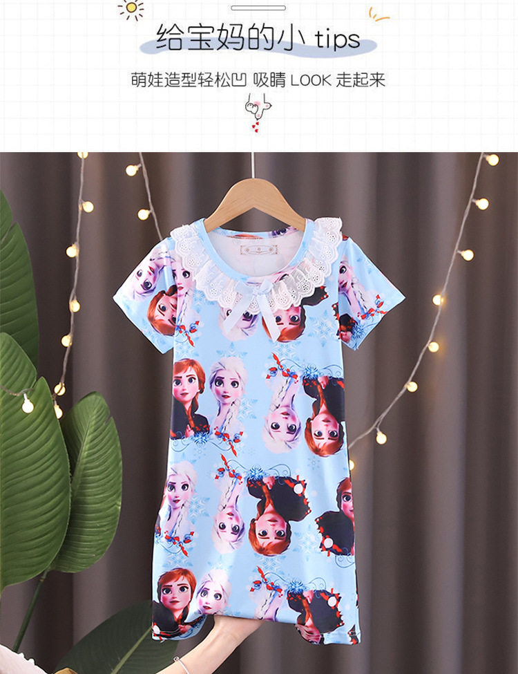 Детская летняя пижама для девочек: ночная сорочка с коротким рукавом, кружевная, с принтом «Ледяная принцесса», домашняя одежда в стиле KPOP для девочек