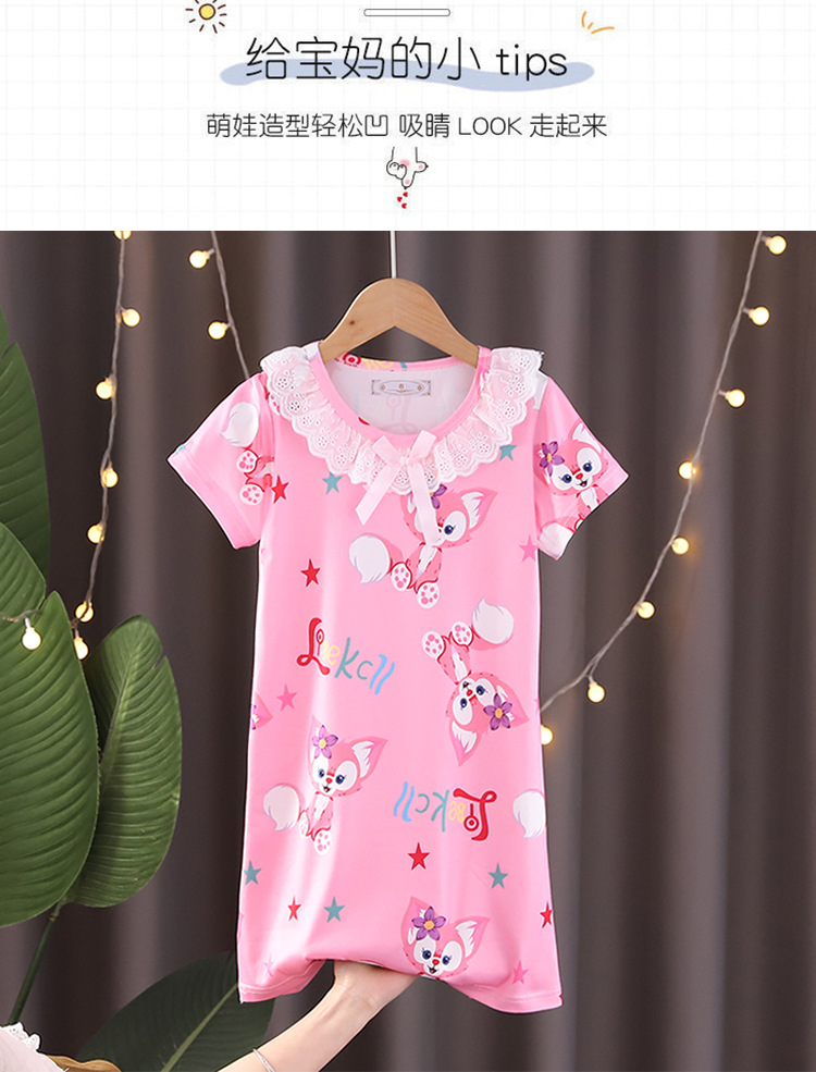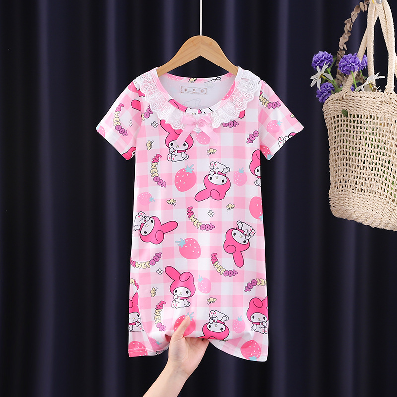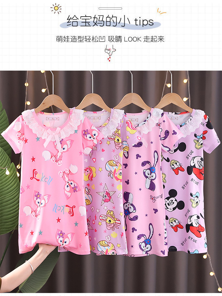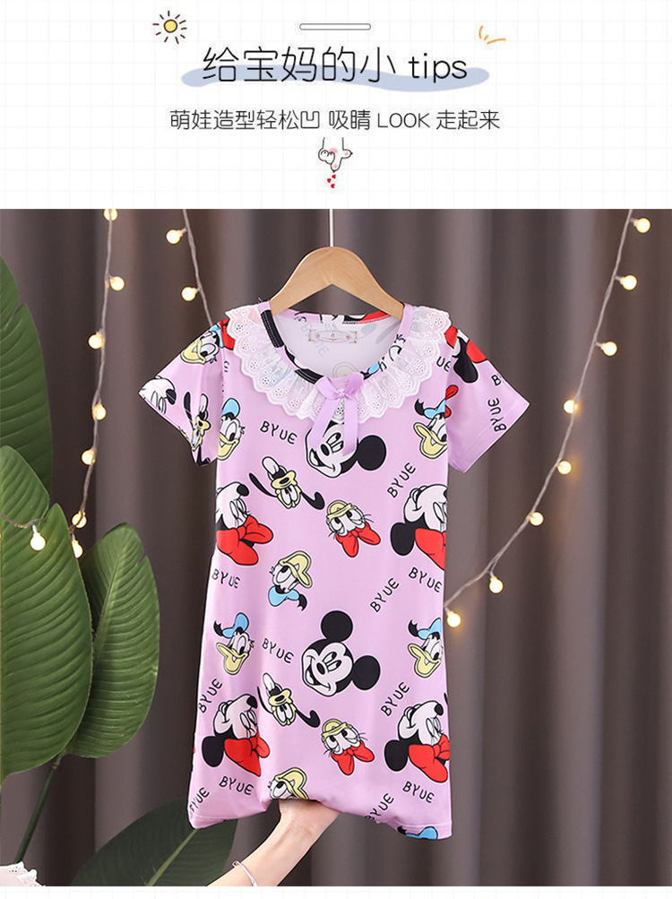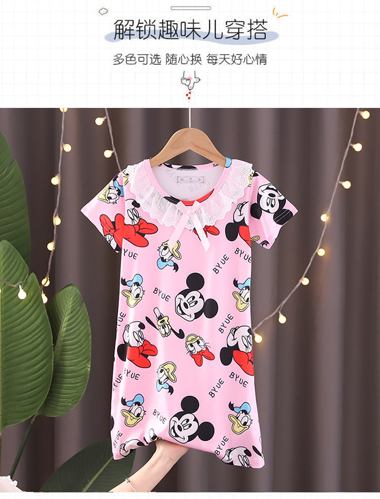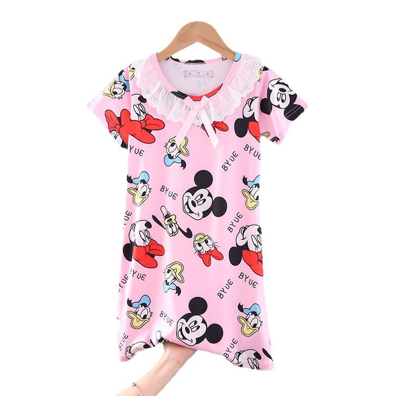 Детская летняя пижама для девочек: ночная сорочка с коротким рукавом, кружевная, с принтом «Ледяная принцесса», домашняя одежда в стиле KPOP для девочек