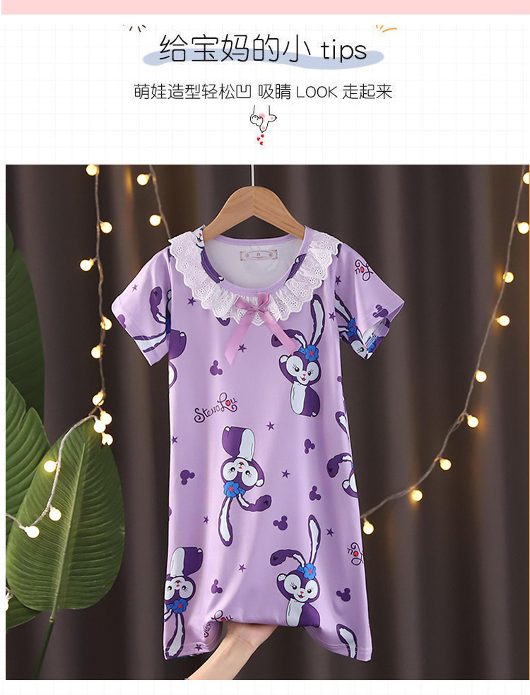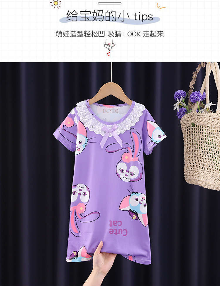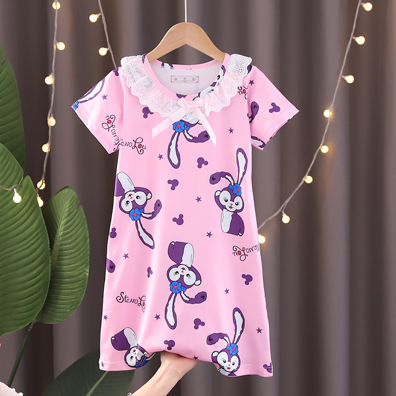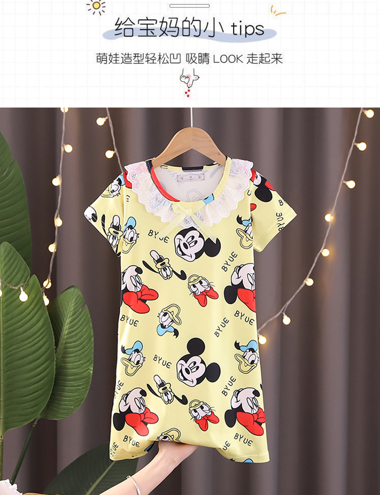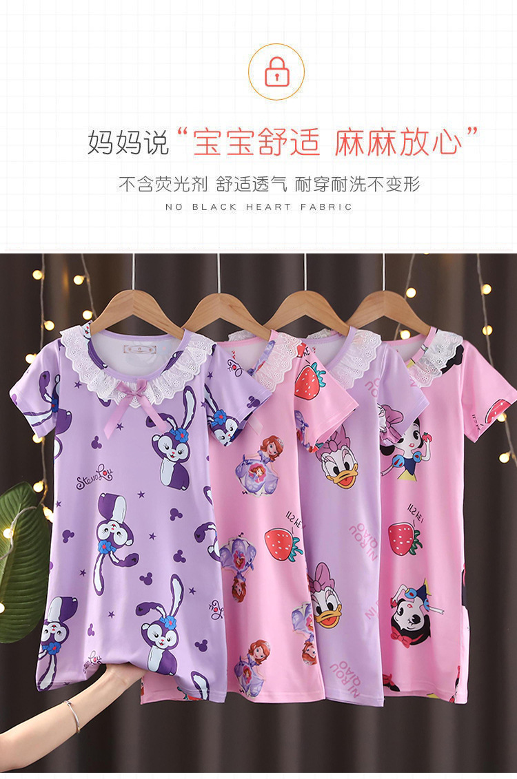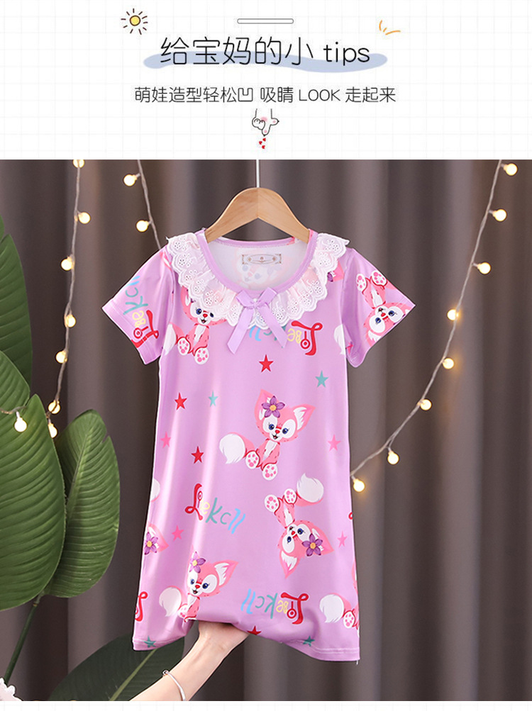 Детская летняя пижама для девочек: ночная сорочка с коротким рукавом, кружевная, с принтом «Ледяная принцесса», домашняя одежда в стиле KPOP для девочек