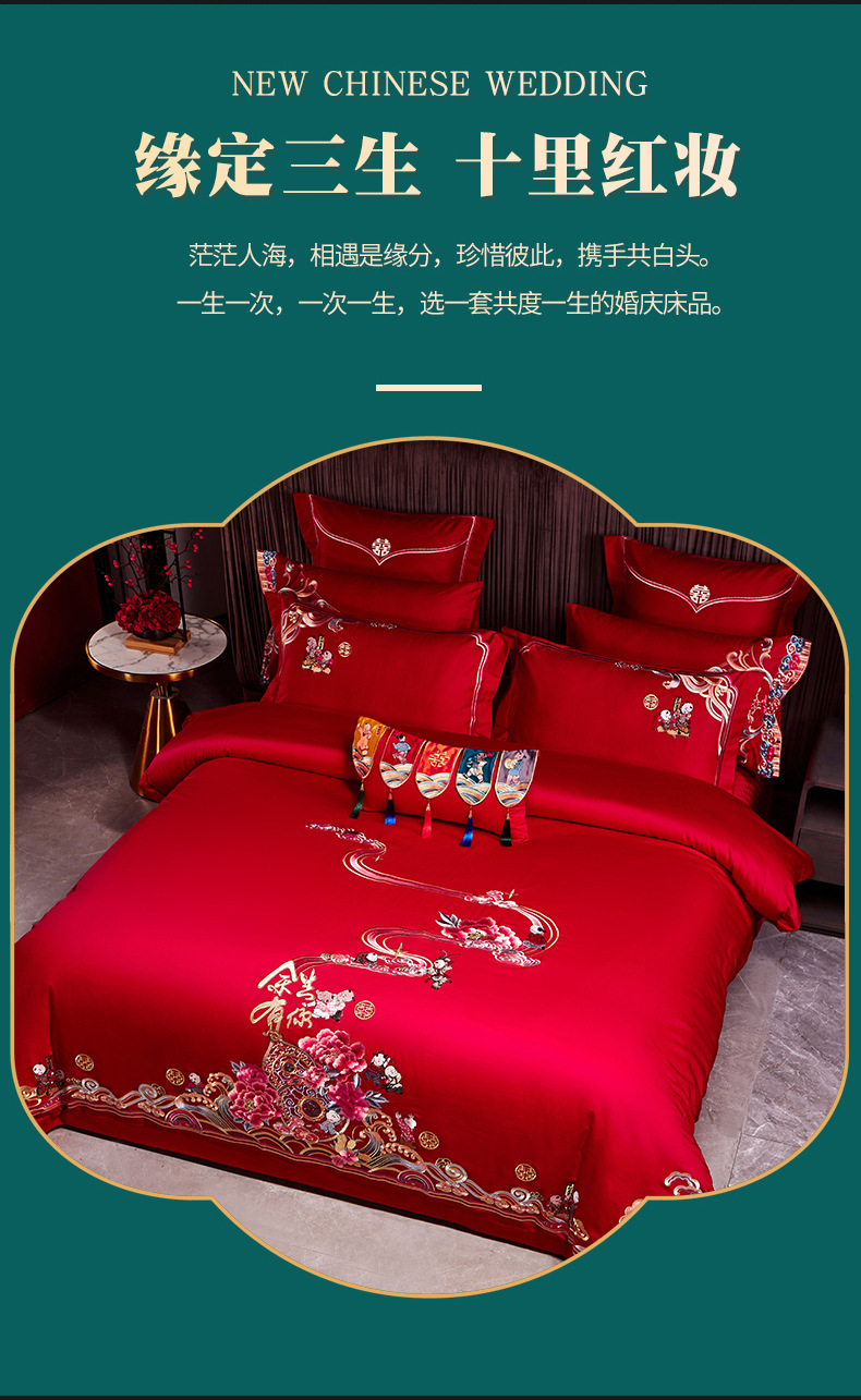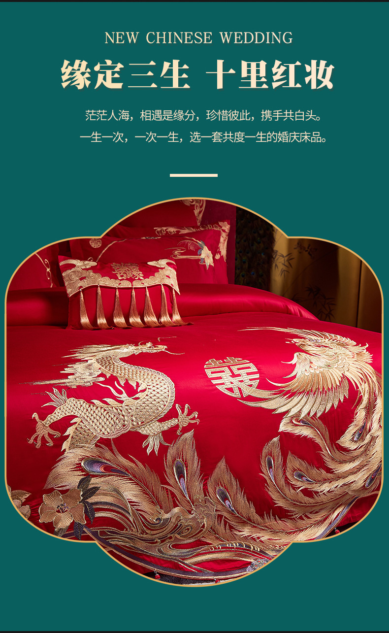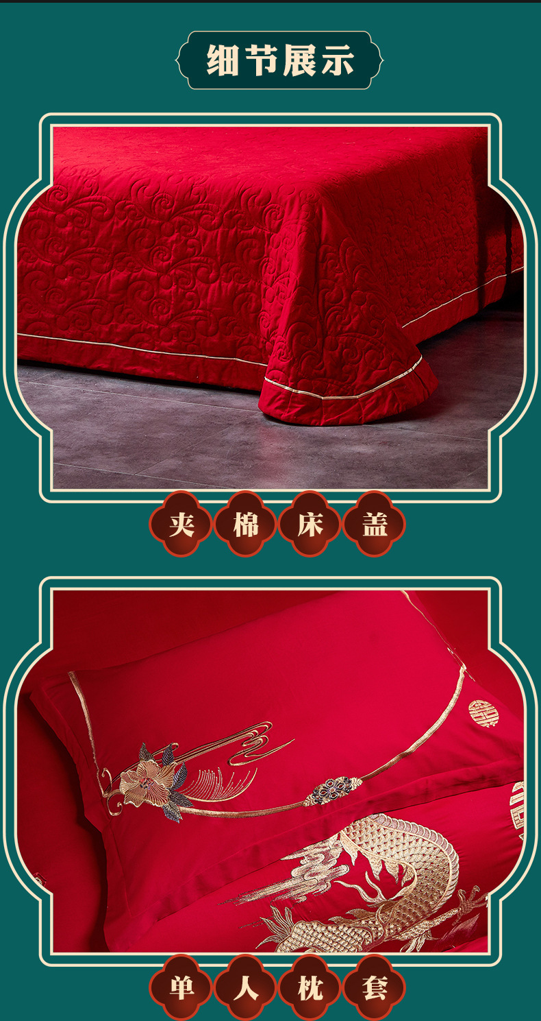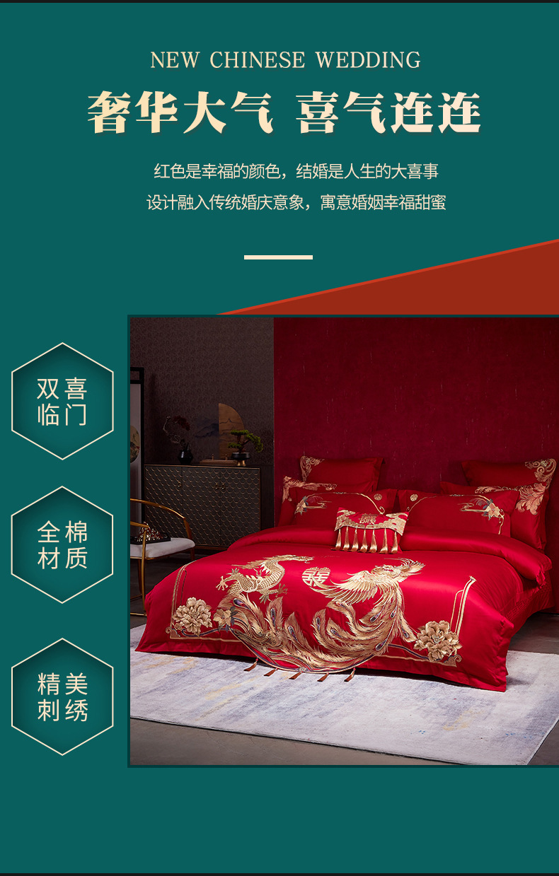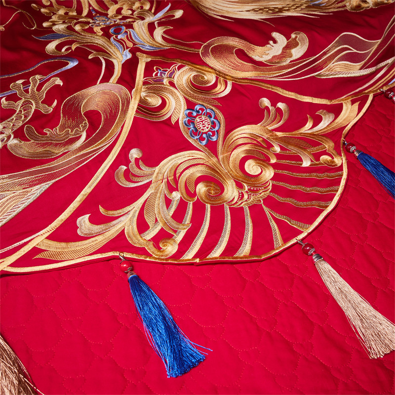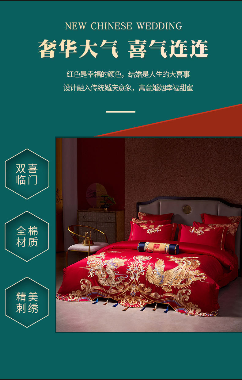 Свадебный комплект в новом китайском стиле с вышивкой дракона и феникса, из сатина 160S и длинноволокнистого хлопка, комплект из четырех предметов, легкая роскошь, высококачественный, для торжественных случаев с драконом и фениксом