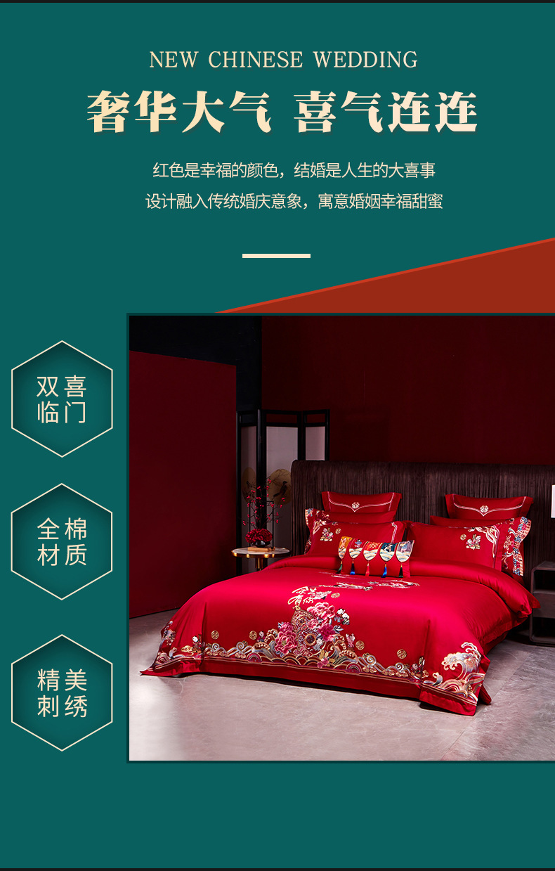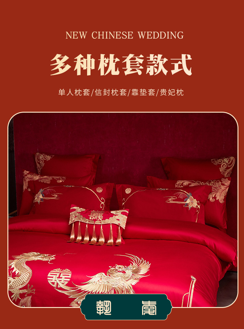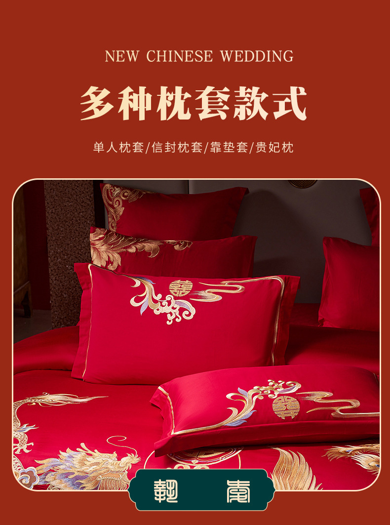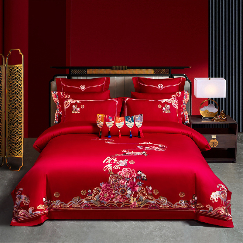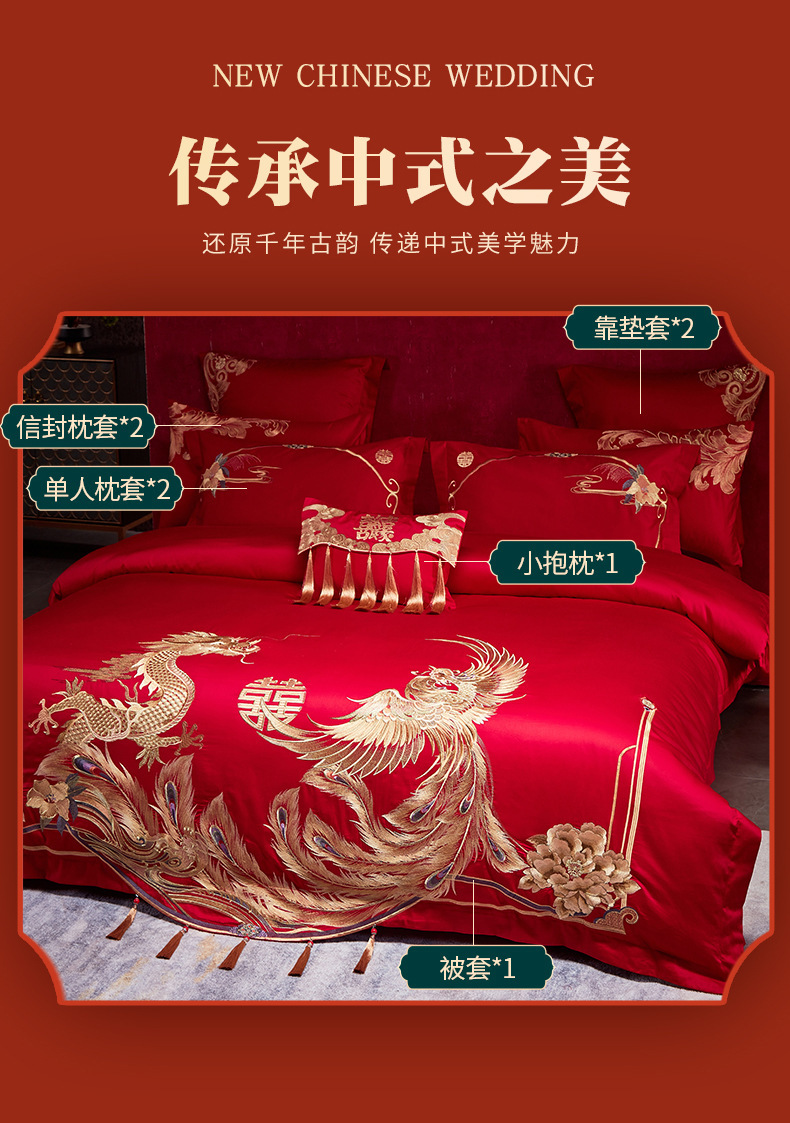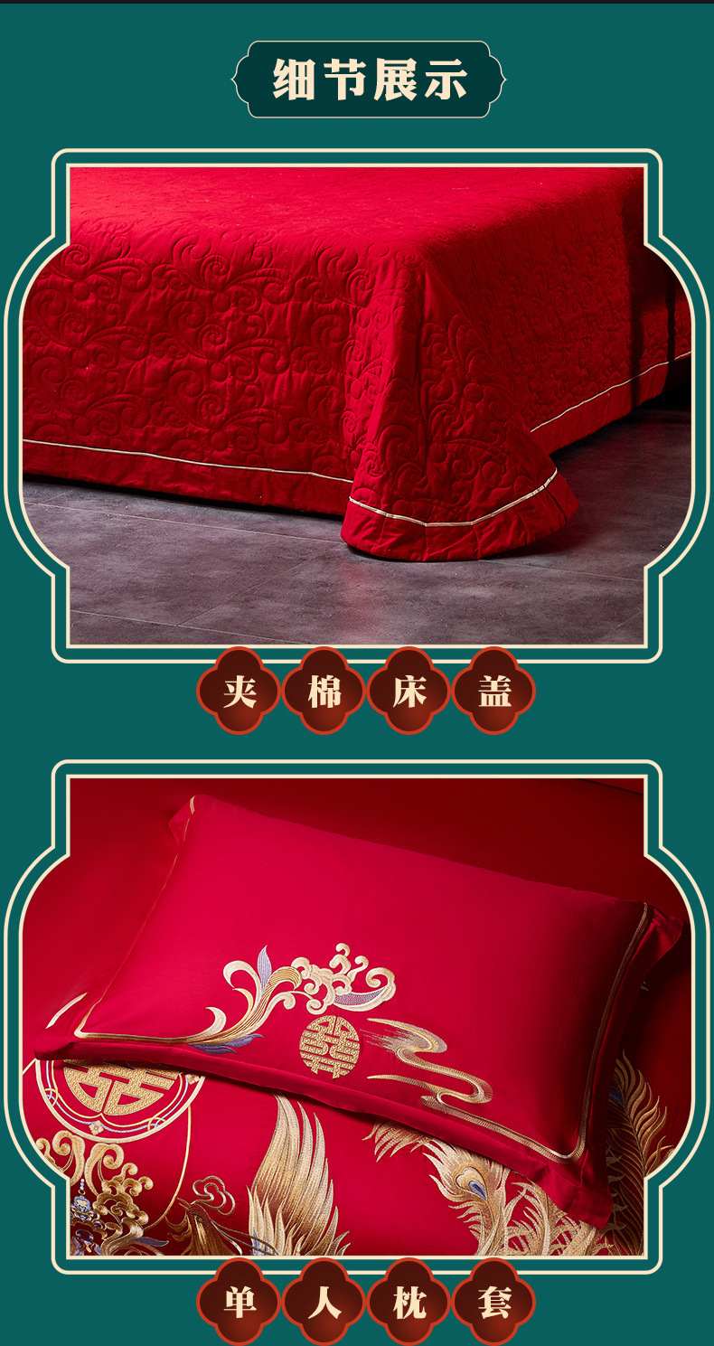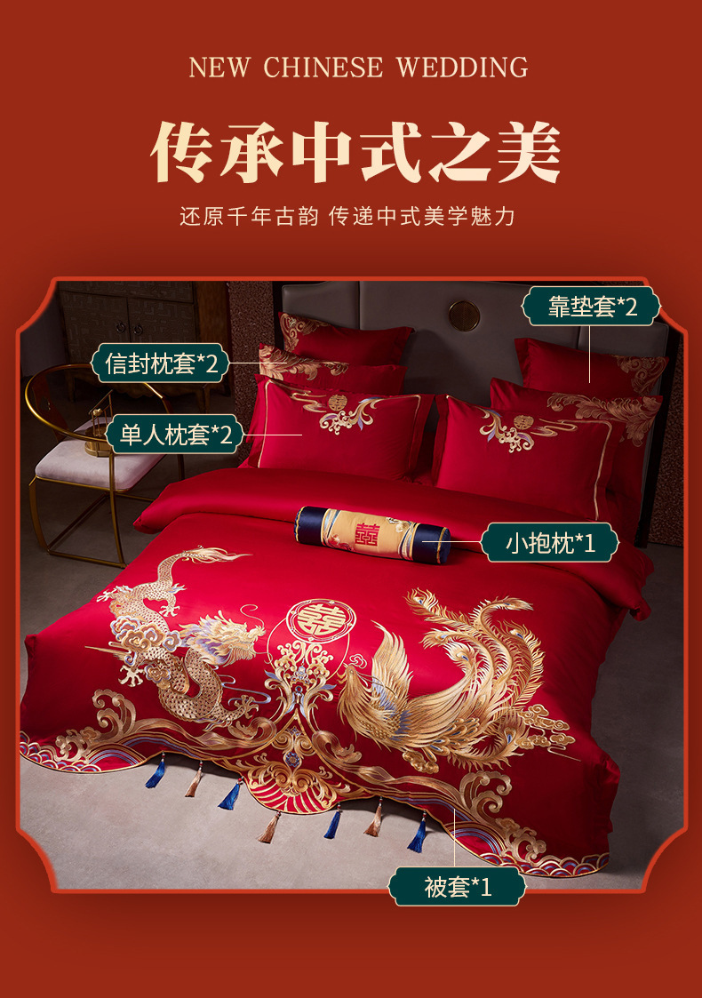 Свадебный комплект в новом китайском стиле с вышивкой дракона и феникса, из сатина 160S и длинноволокнистого хлопка, комплект из четырех предметов, легкая роскошь, высококачественный, для торжественных случаев с драконом и фениксом