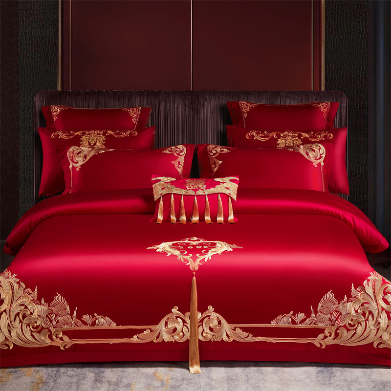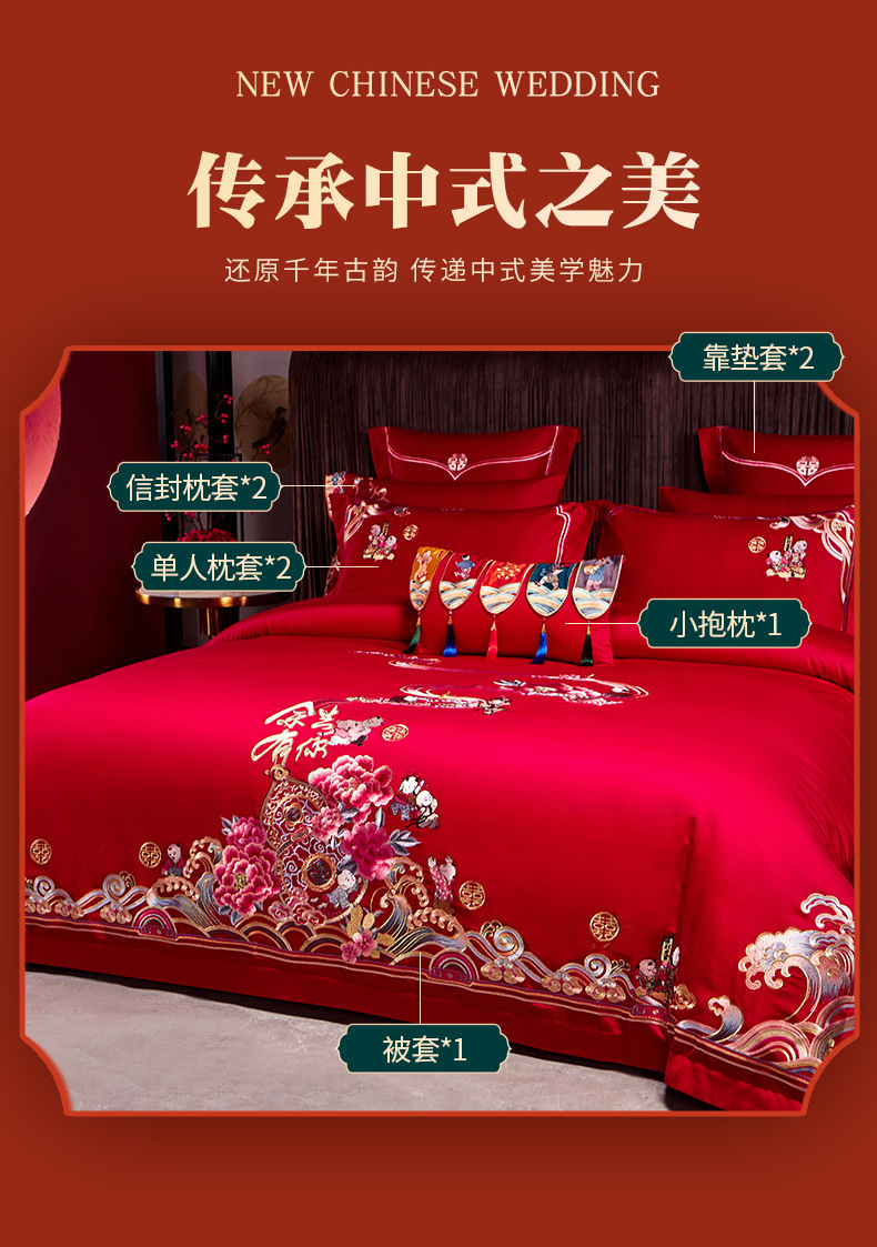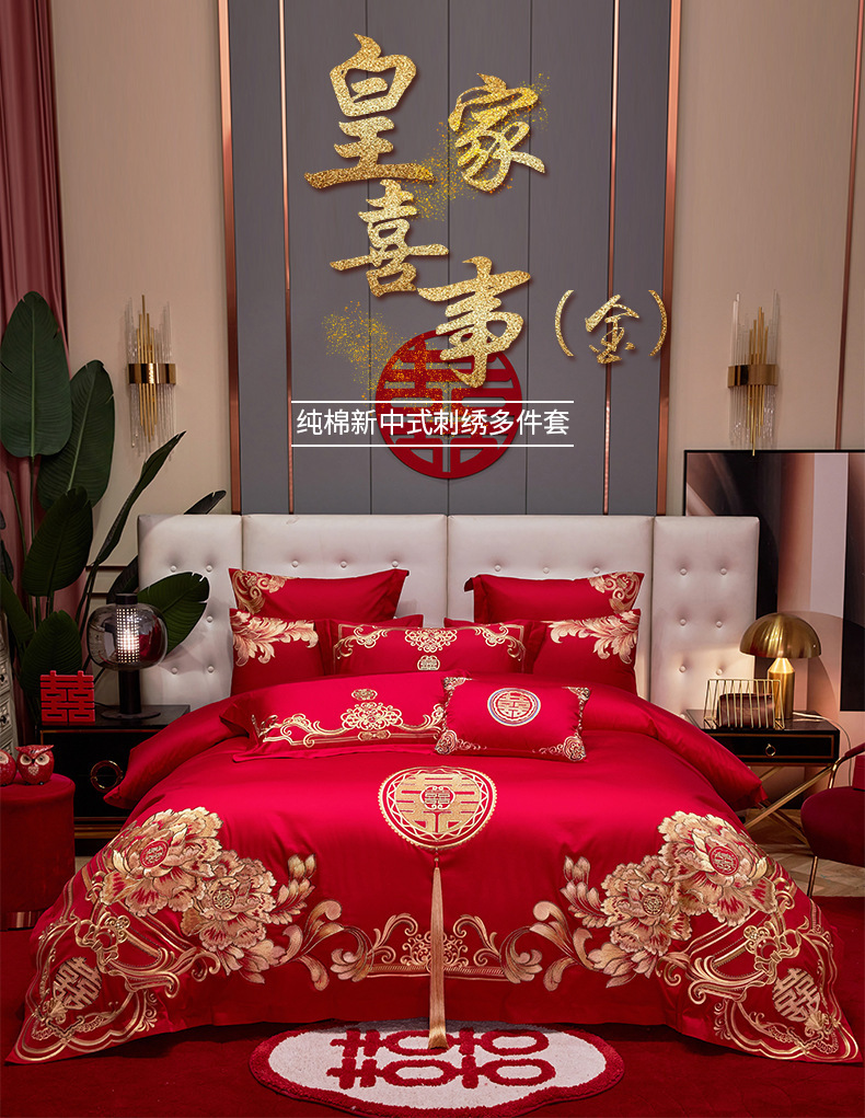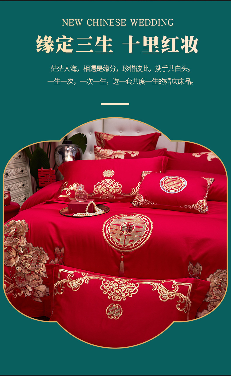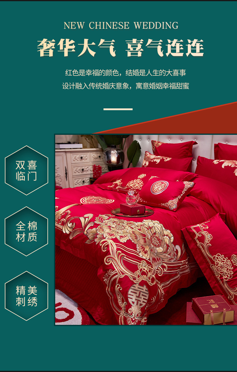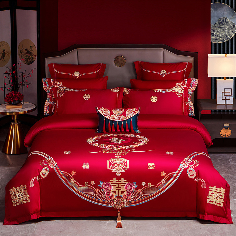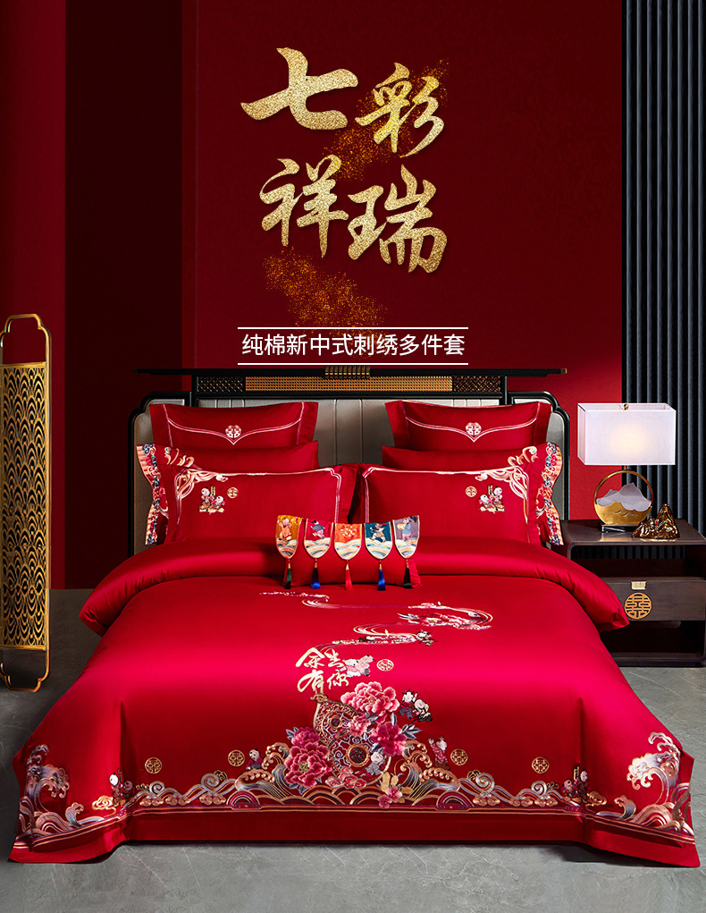 Свадебный комплект в новом китайском стиле с вышивкой дракона и феникса, из сатина 160S и длинноволокнистого хлопка, комплект из четырех предметов, легкая роскошь, высококачественный, для торжественных случаев с драконом и фениксом