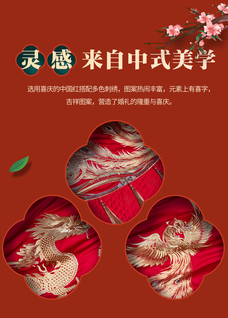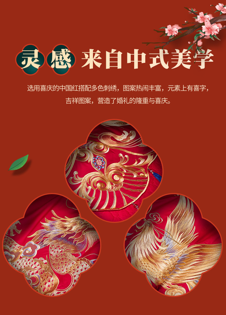 Юбилей передается из поколения в поколение; Королевская свадьба-Золото-Мода; Идеальное соответствие; Золотая и нефритовая любовь; Дракон и Феникс представляют Юбилей; Красочная благоприятность; свадебный банкет; Миллениарский брак; Дракон и Феникс гармоничны; Навсегда вместе; Поздравляю с вашей свадьбой; Дракон и Феникс играют с жемчугом; Счастливые события; Истинные чувства приходят в резкий рост; Мое сердце прослужит вечно; Обещание в этой жизни; счастливая жизнь; Процветание