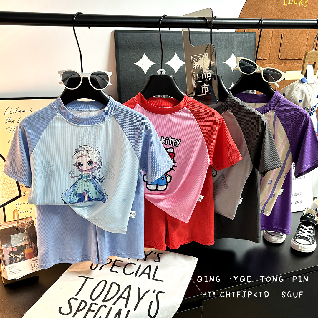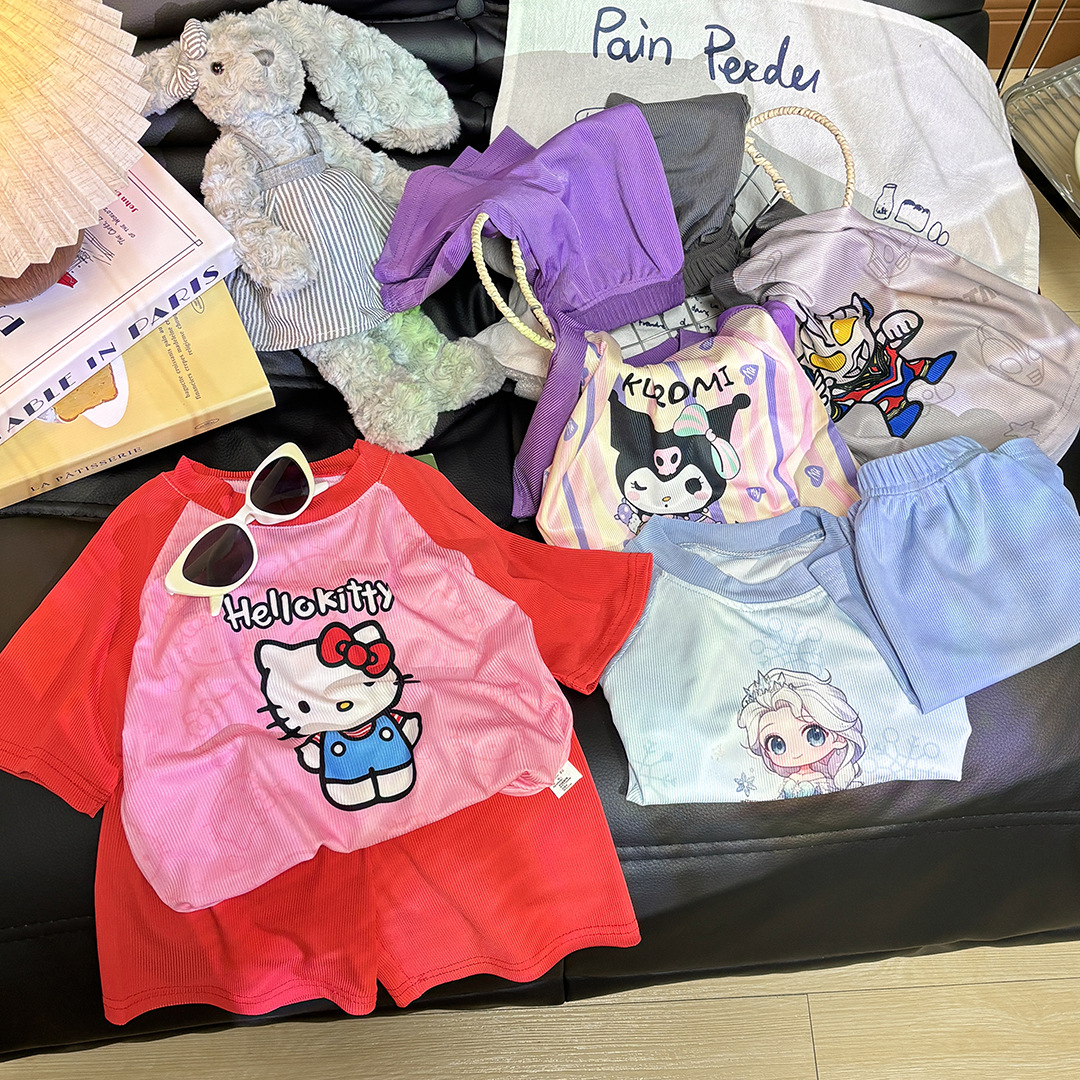 Детские летние шорты с короткими рукавами для мальчиков спортивный мультфильм футболка с короткими рукавами пижама для девочек