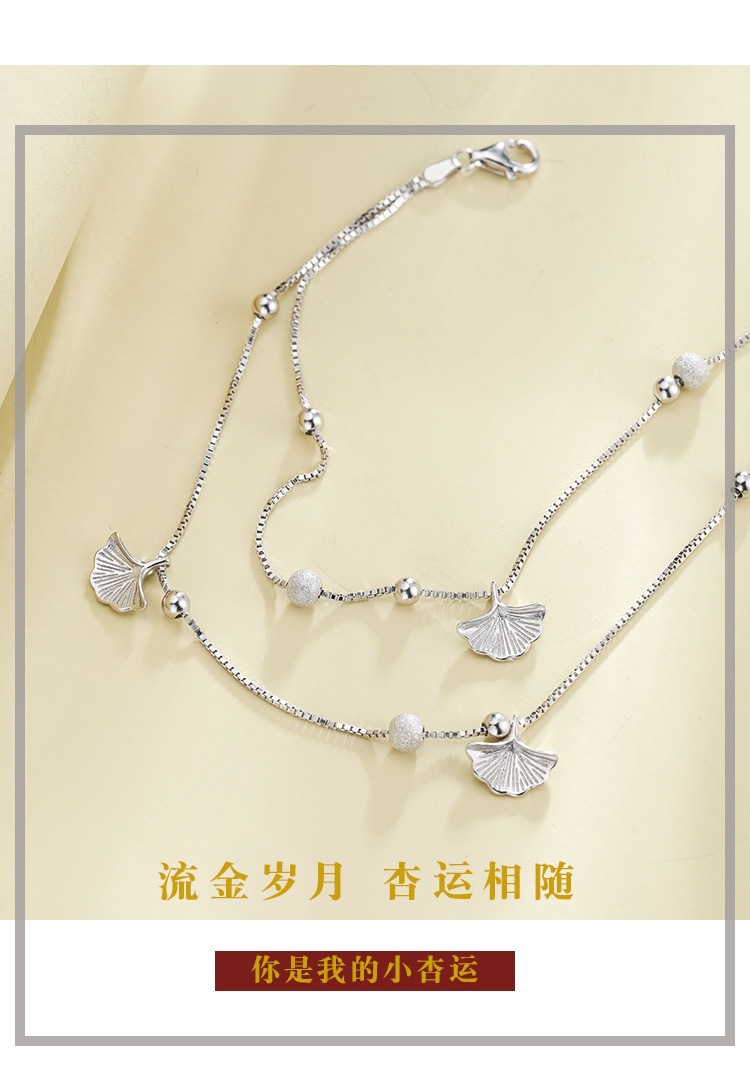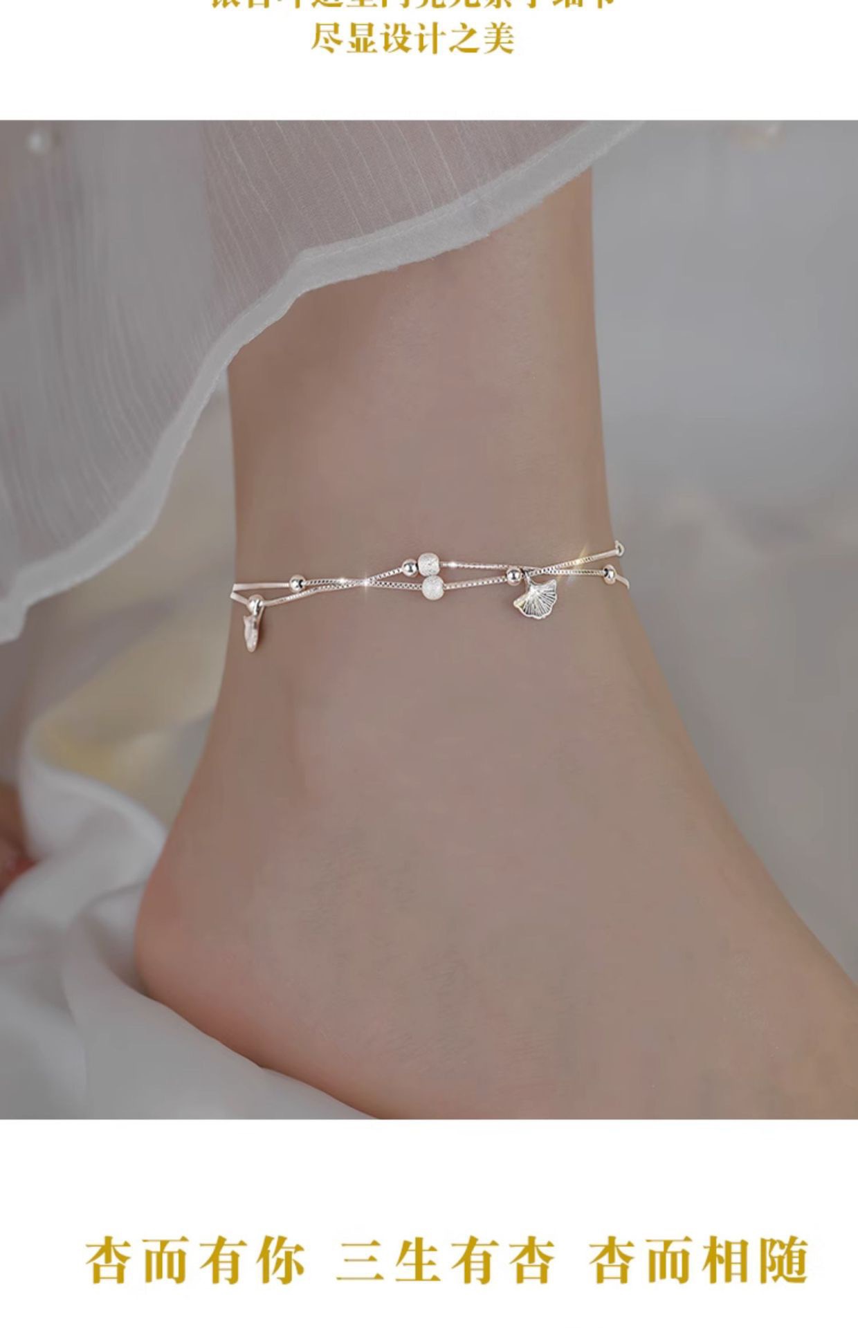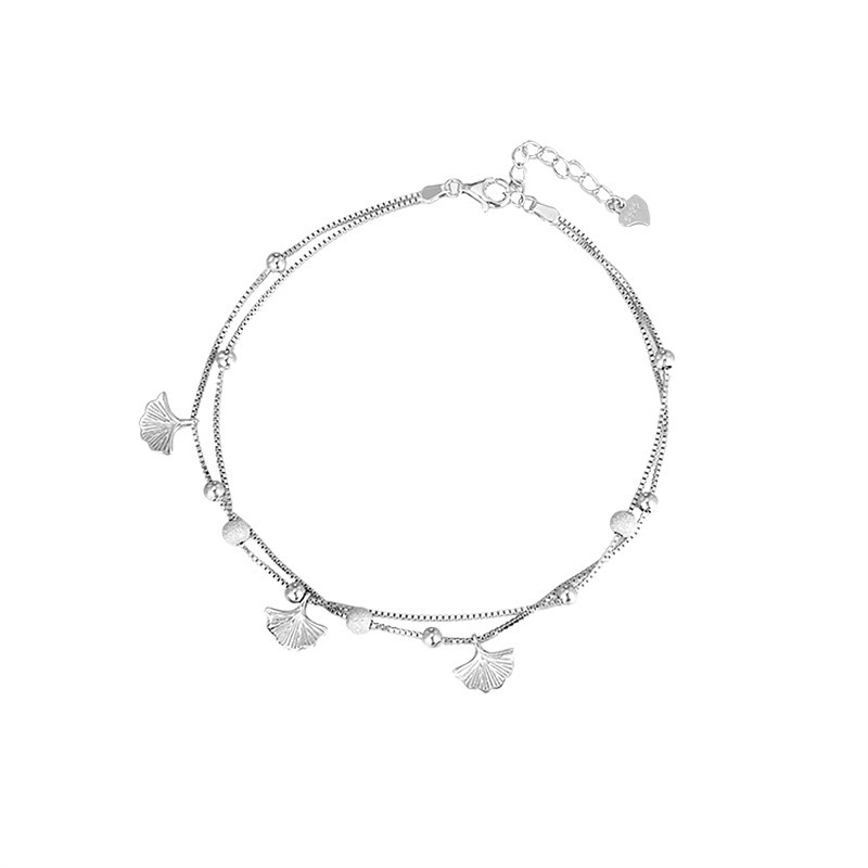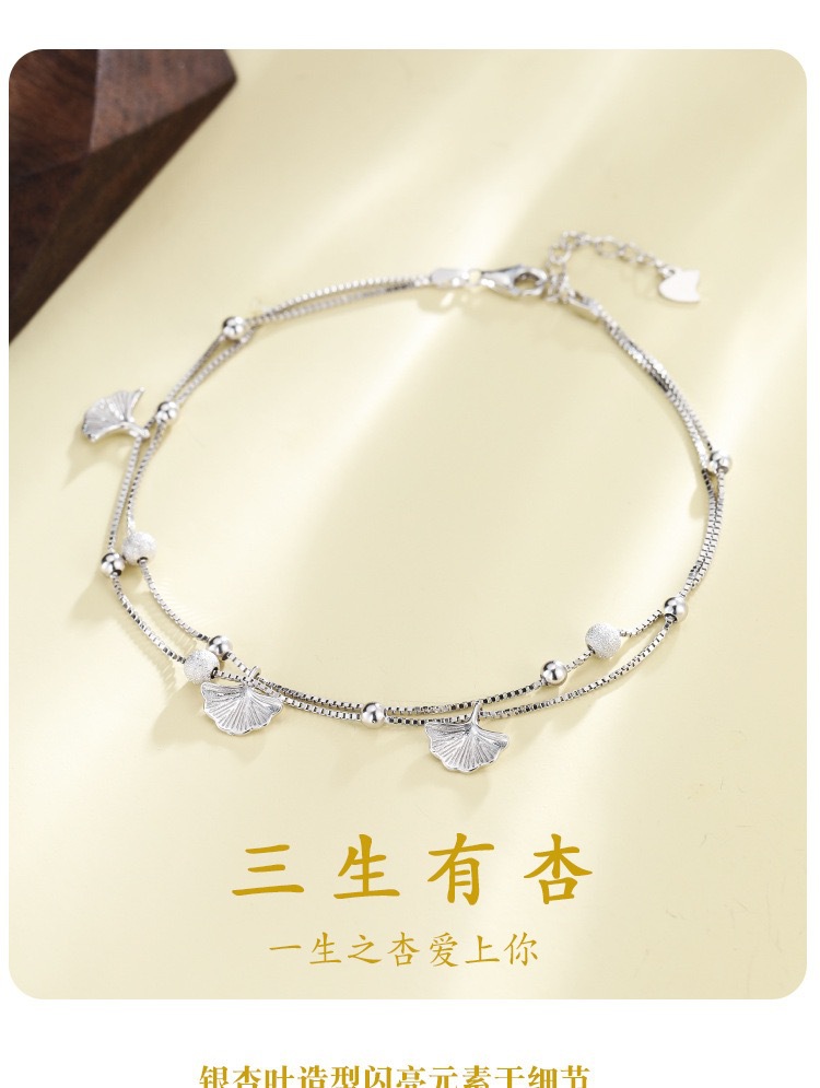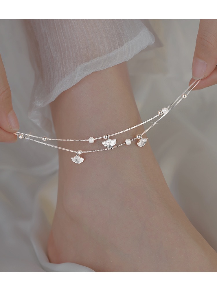 Двухслойный ножной браслет Sansheng Youxing с листьями абрикоса (серебро)