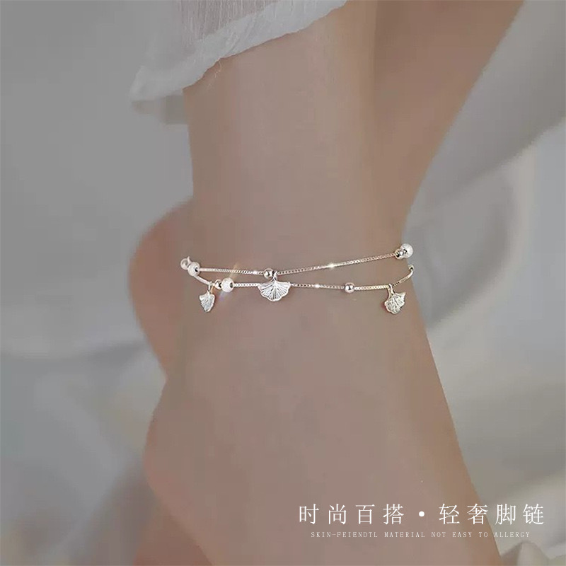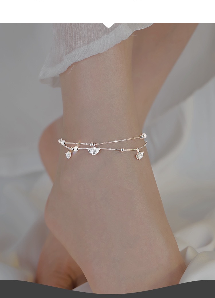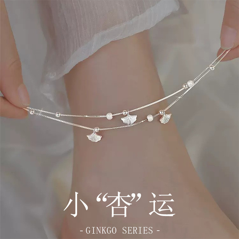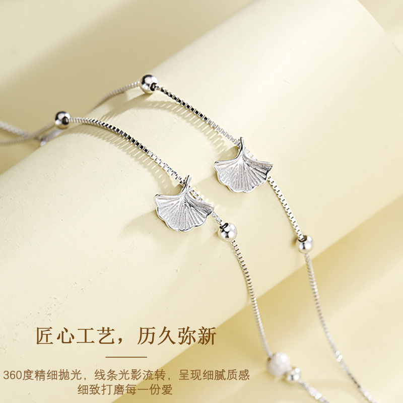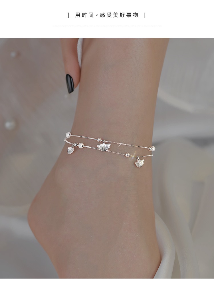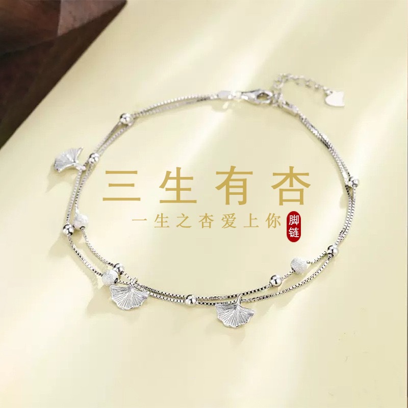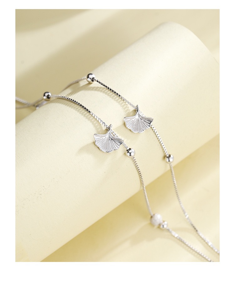 Двухслойный ножной браслет Sansheng Youxing с листьями абрикоса (серебро)