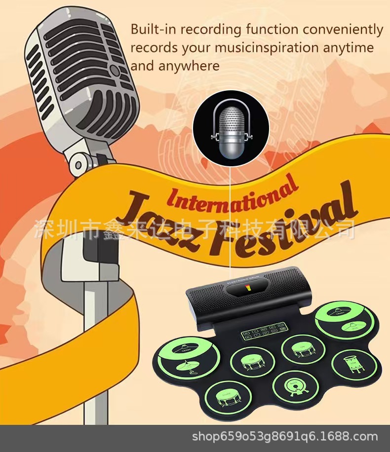 RD90 двойной динамик играет на барабанах ручная катка электронный барабан для детей, обучение барабан портативный ручная игра DTX