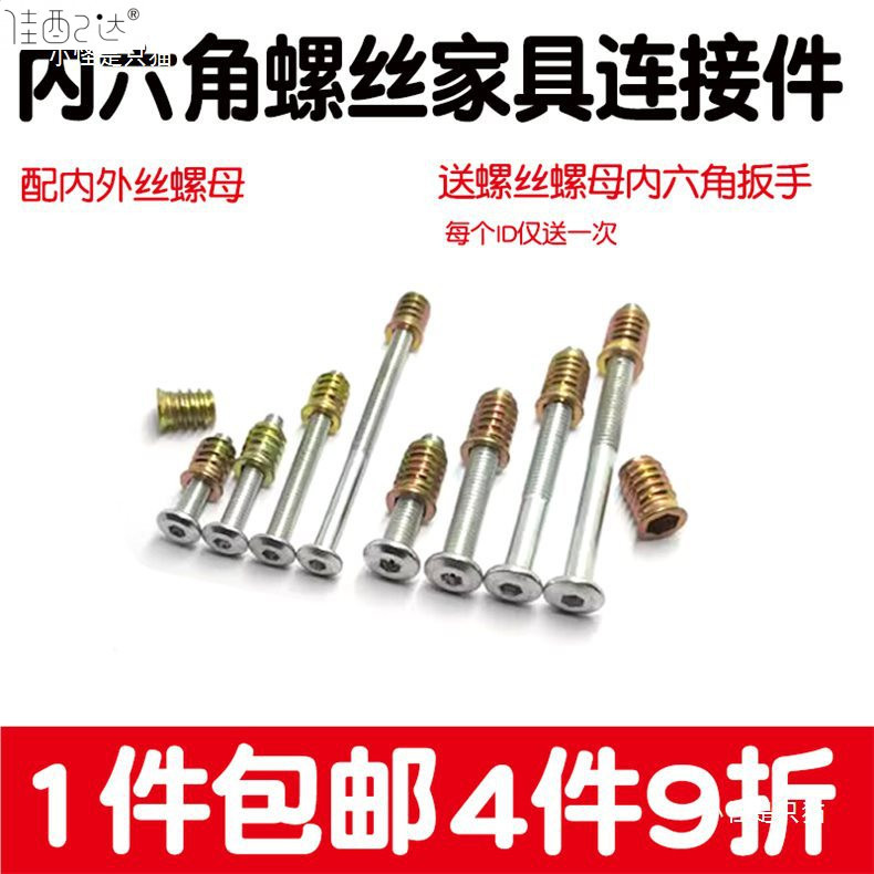 Внутренний шестиугольный мебельный винт Внутренние и внешние зубы предварительно заглублены удлиненной гайкой плоская головка винт инкрустированная гайка деревянная кровать соединительная часть