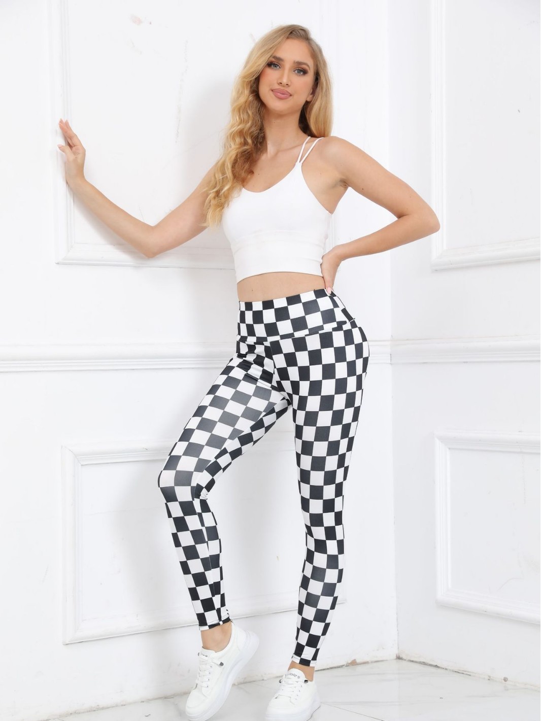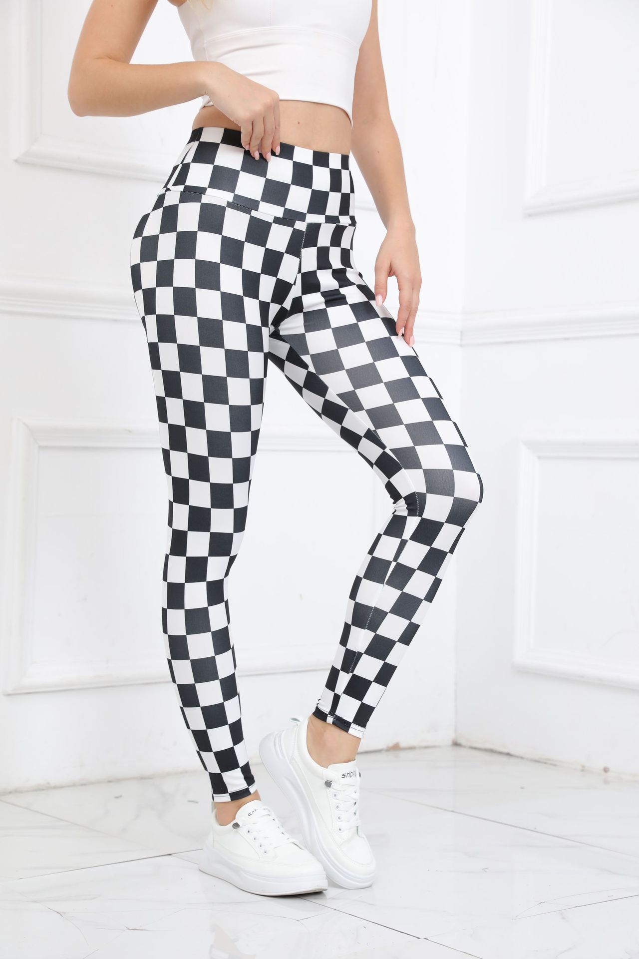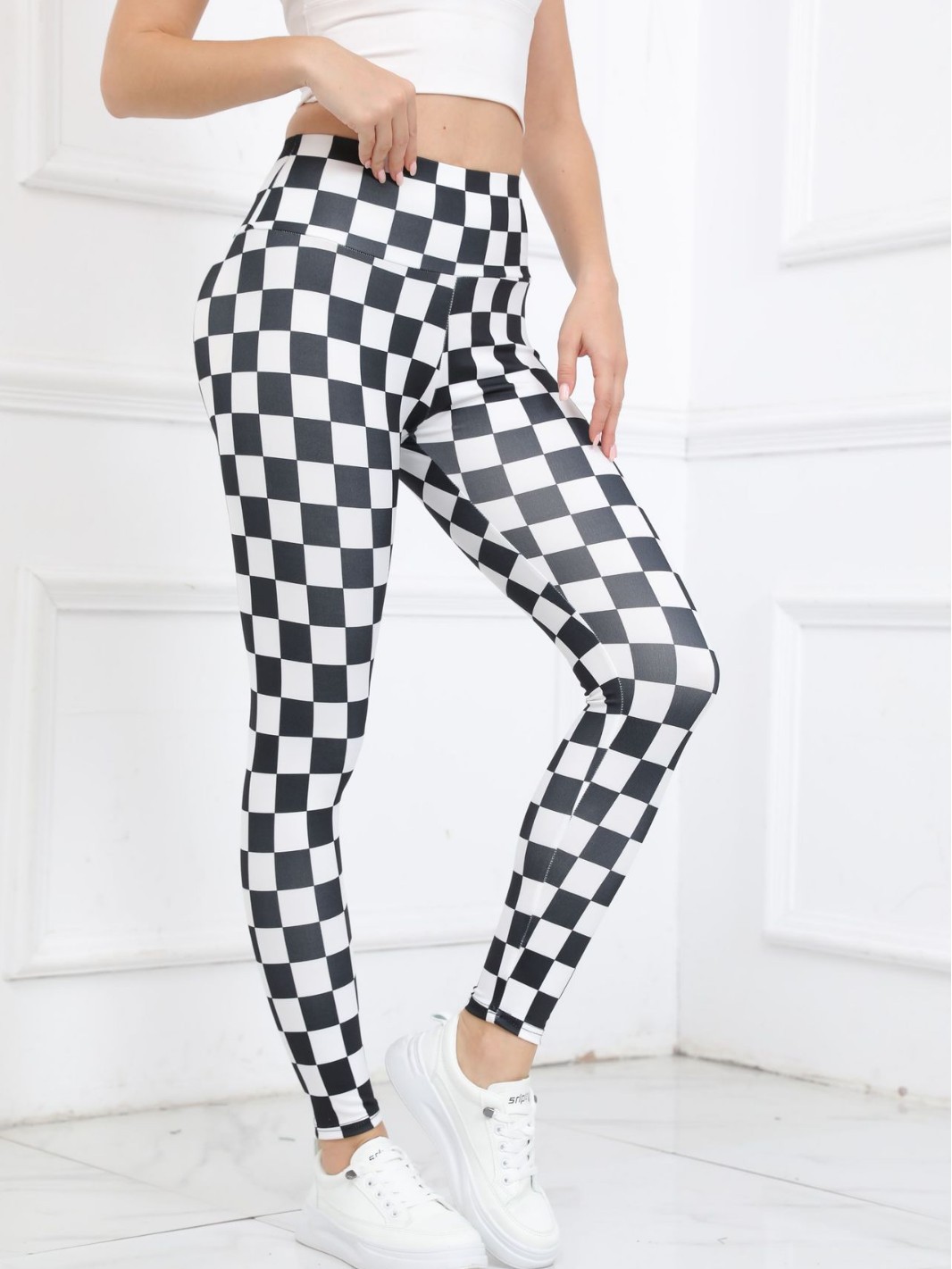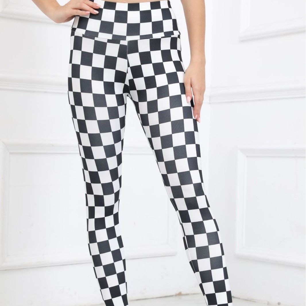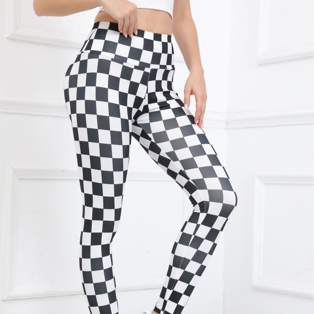 2025 весна и лето европейская и американская шахматная пластина с принтом брюки йоги женские высокие персиковые бедра маленькие спортивные леггинсы