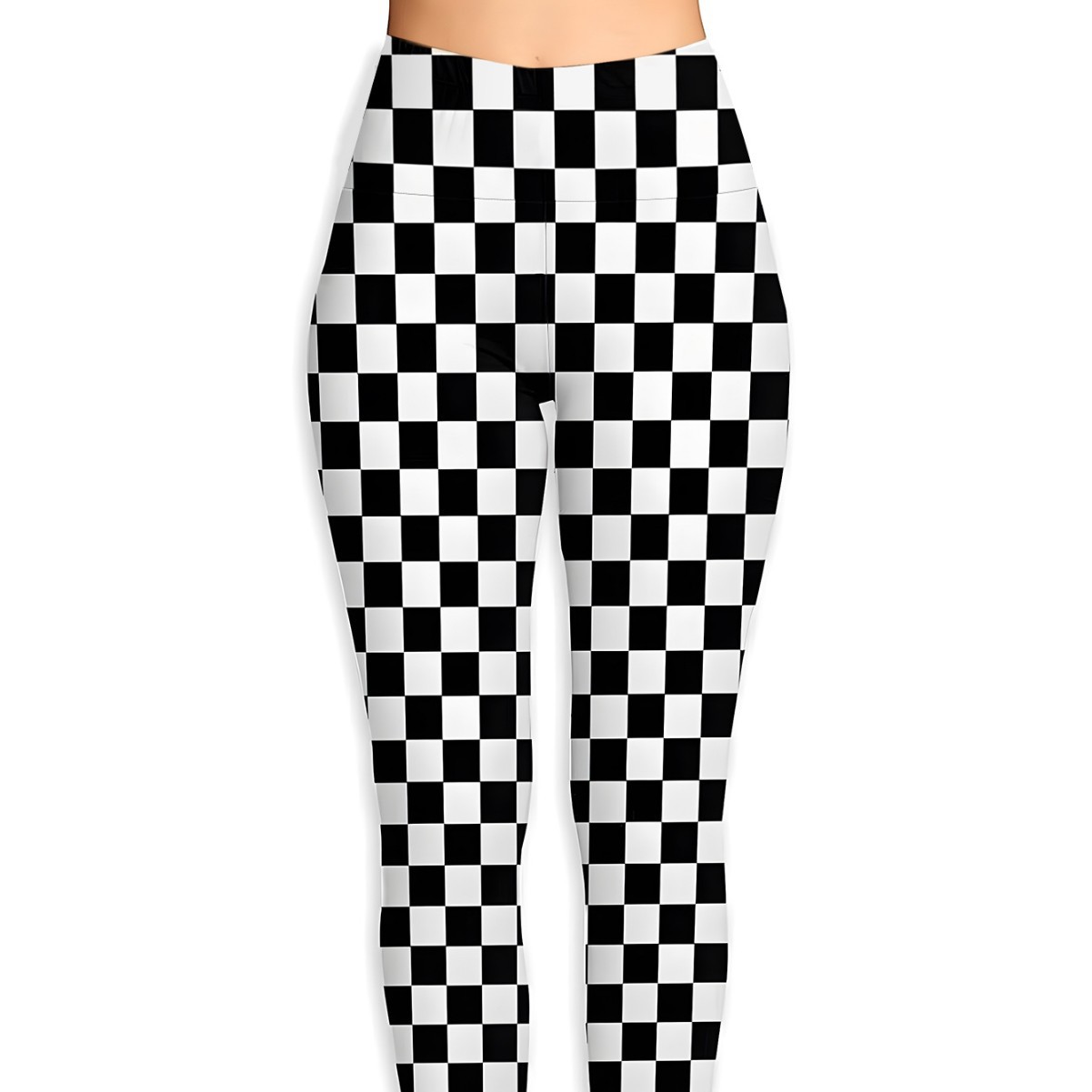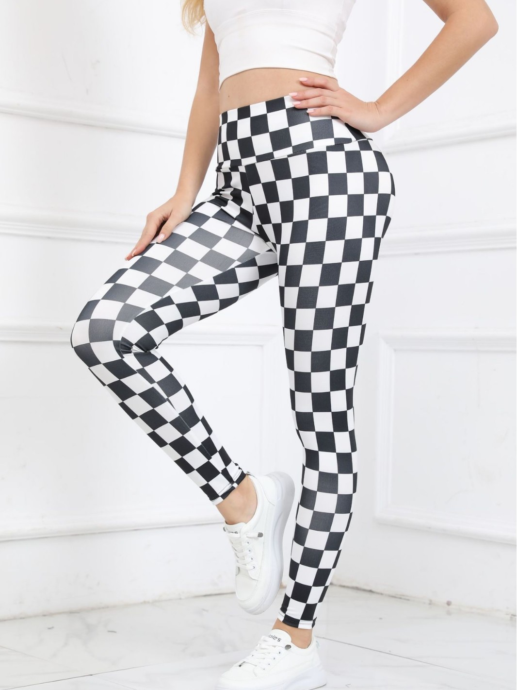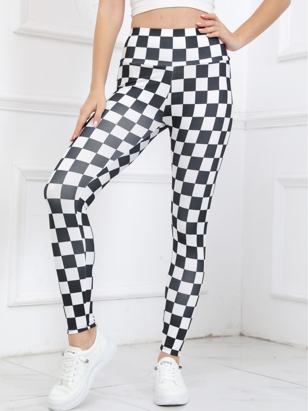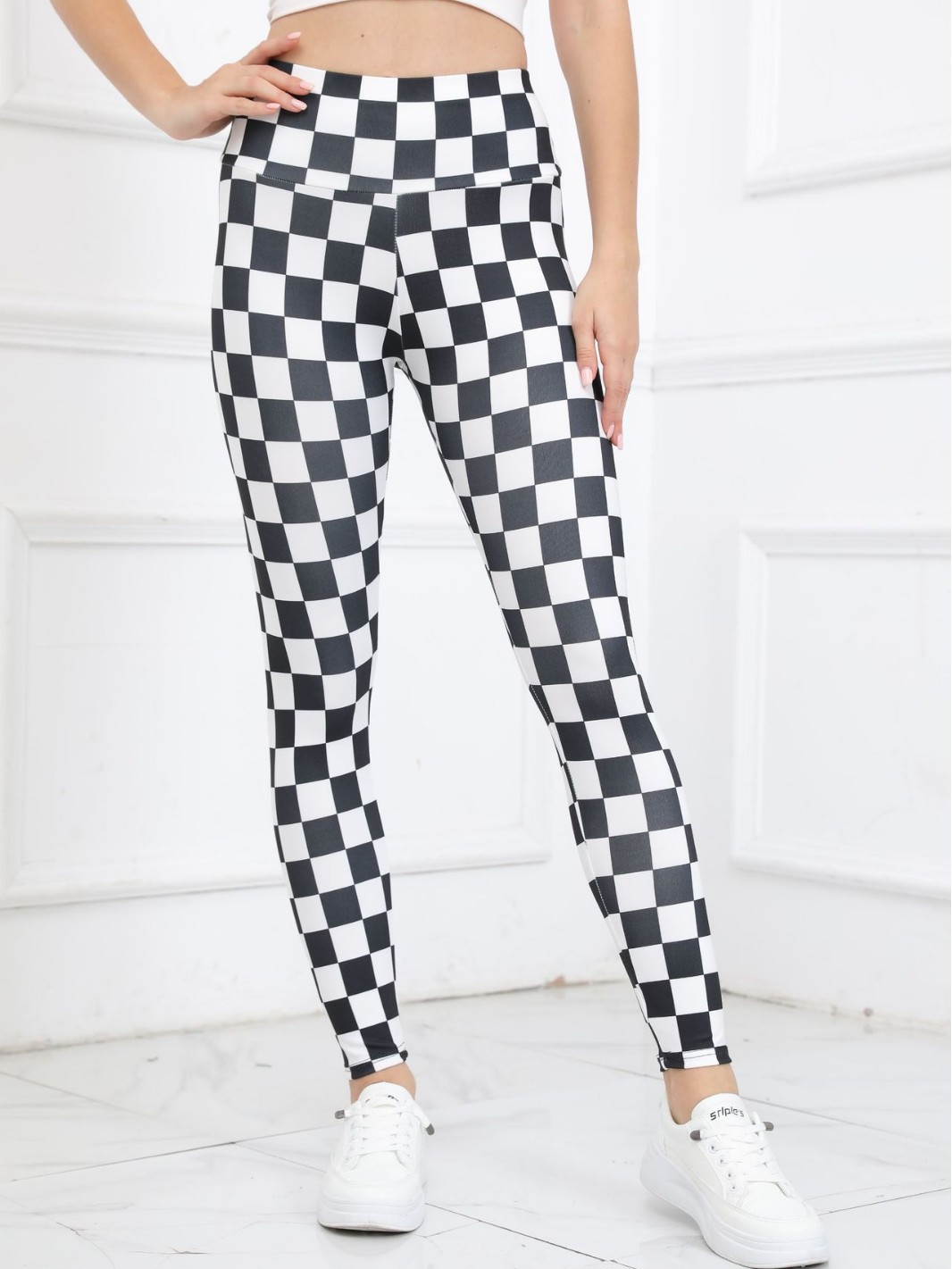 2025 весна и лето европейская и американская шахматная пластина с принтом брюки йоги женские высокие персиковые бедра маленькие спортивные леггинсы