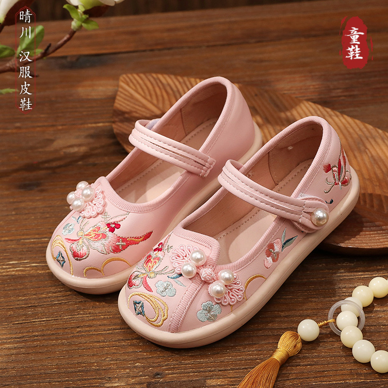 Новая детская обувь в этническом стиле, традиционная обувь с вышивкой для девочек, обувь династии Хань, нескользящая детская кожаная обувь на мягкой подошве, обувь с вышивкой