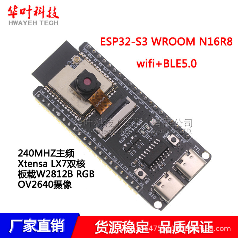 Плата для разработки ESP32-S3-CAM с модулем Wi-Fi и Bluetooth WROOM-N16R8 и камерой OV3660