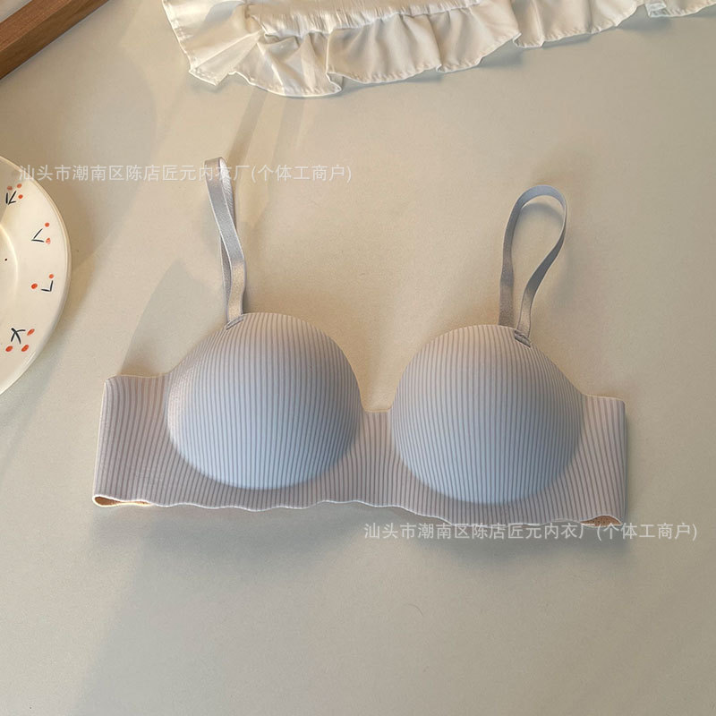 Кружевное белье в полоску для женщин с небольшой грудью, эффект пуш-ап, бесшовный, без косточек, бюстгальтер с защитой от провисания, создающий ощущение премиум-класса.