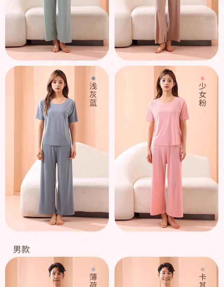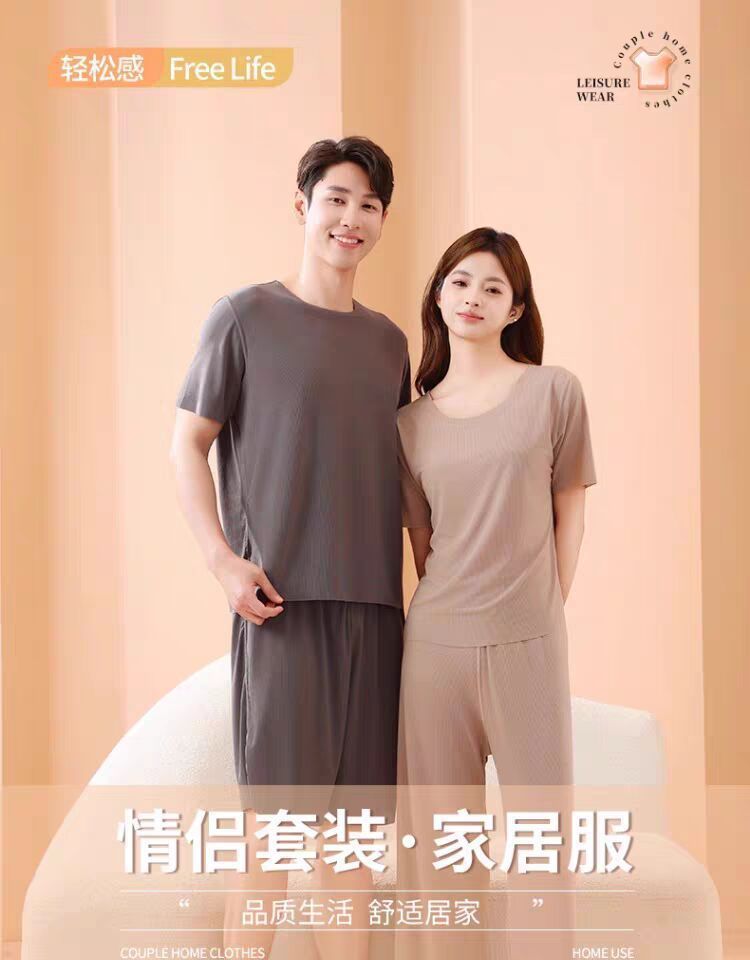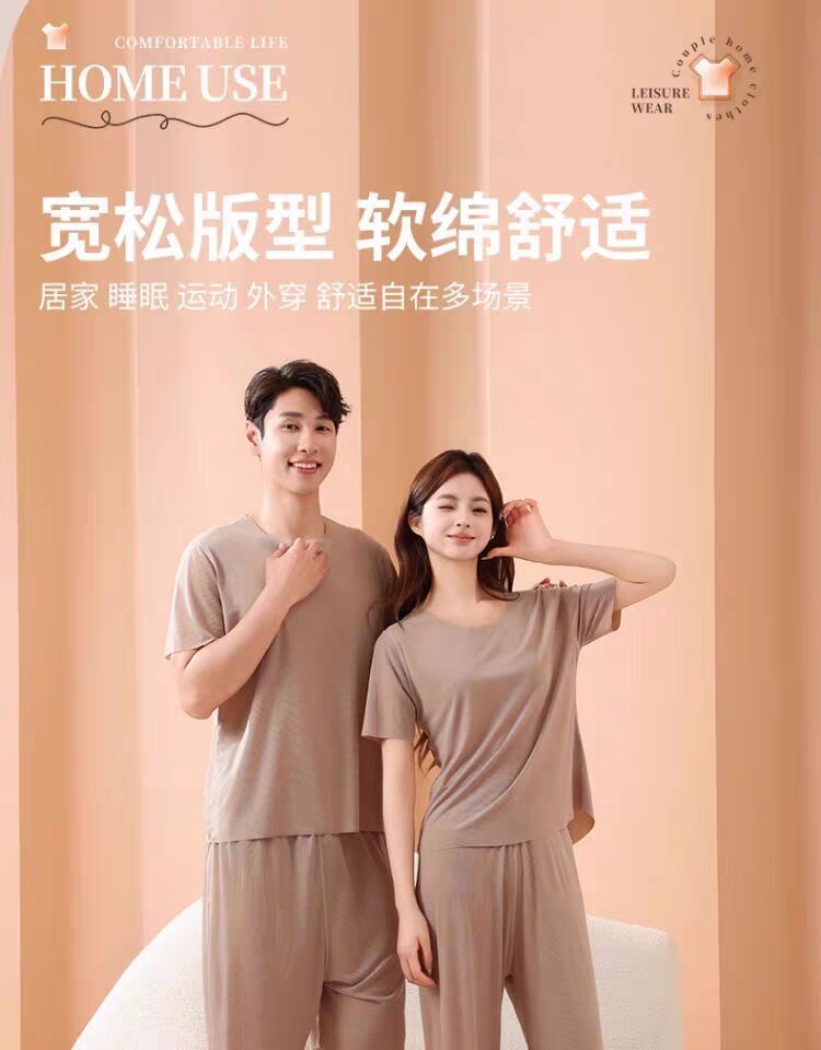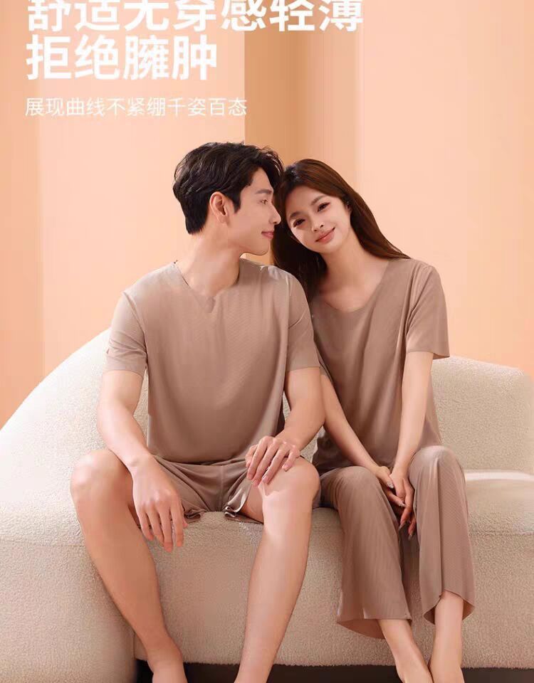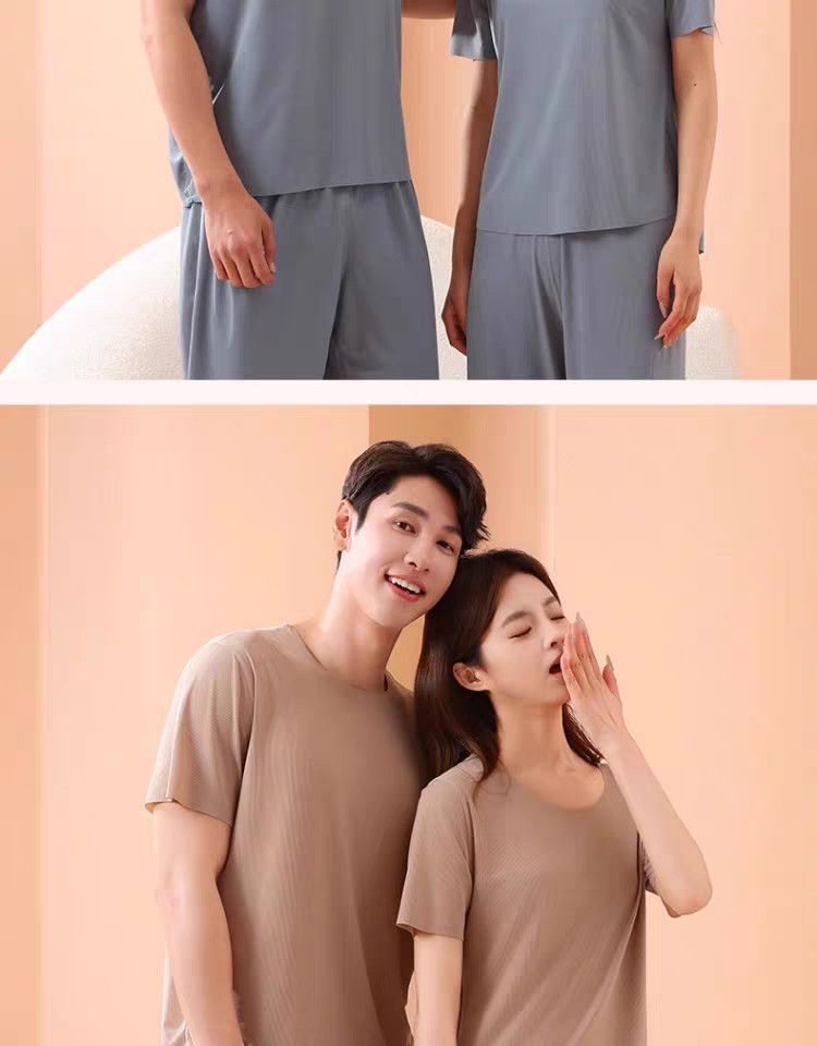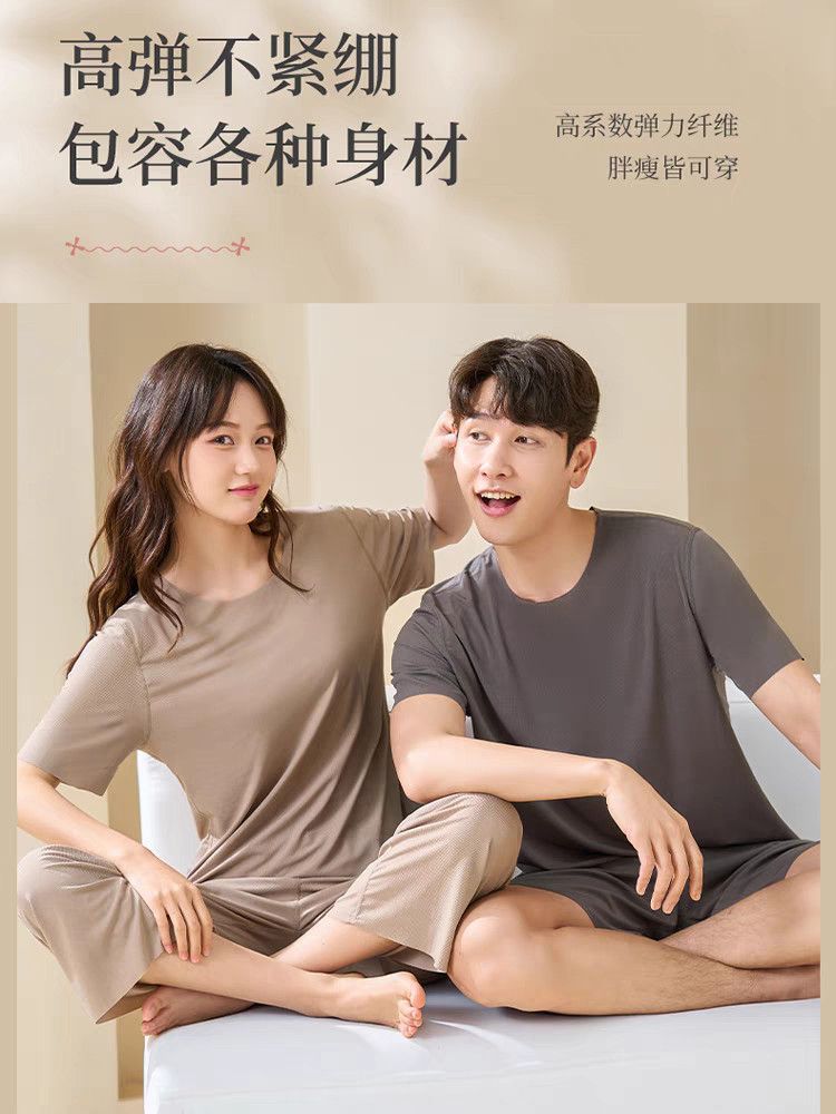 Ледяной шелк пара пижамы набор женский лето 2023 свободная большая семейная одежда мужская пижама спот оптом