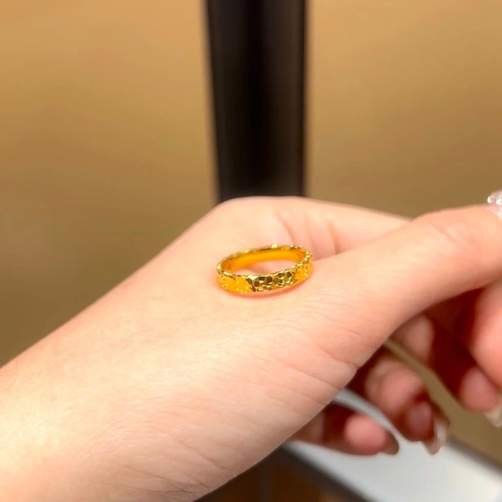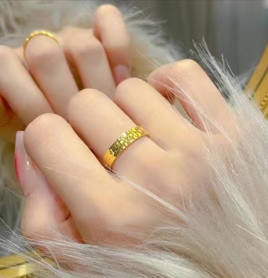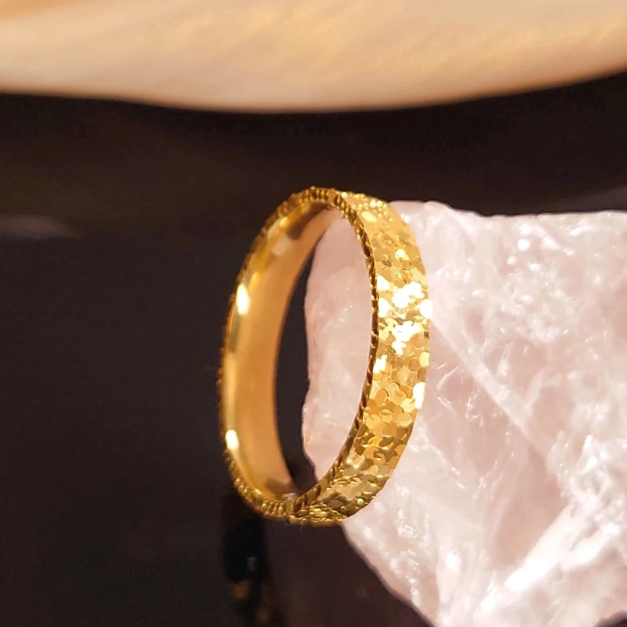 Кольцо из золота 18К с эффектом "крошеного льда", Au750, цельное, несъемное, с лазерной гравировкой, парное кольцо оптом