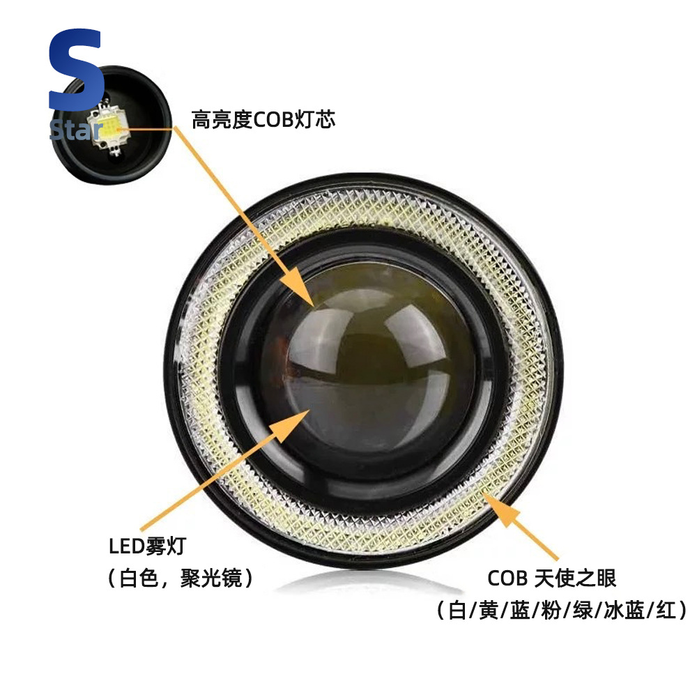 Трансграничная универсальная автомобильная противотуманная фара двойного света COB Angel Eyes противотуманная фара 89 мм модифицированная светодиодная линза рыбий глаз дневной свет