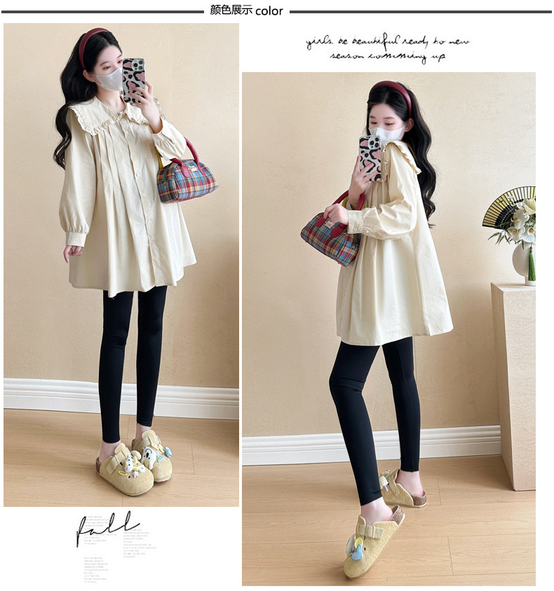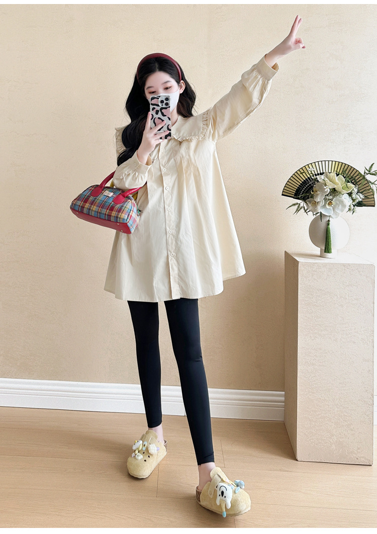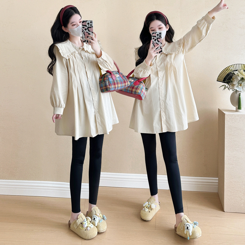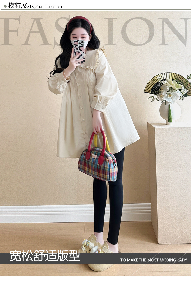 Модная и стильная рубашка-бэбидолл для беременных с длинным рукавом, средней длины, весна 2025 года
