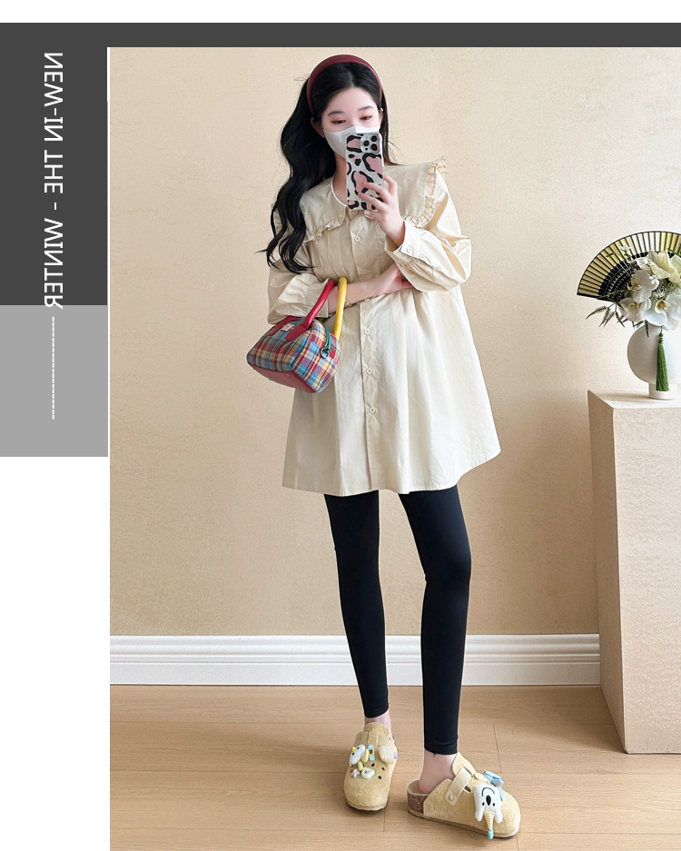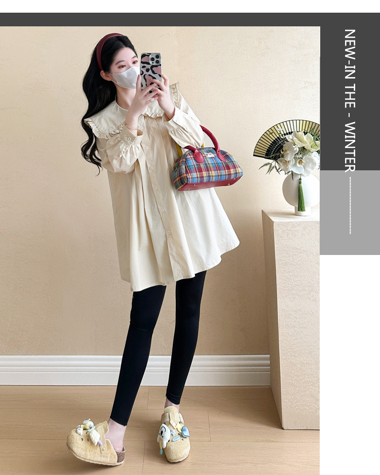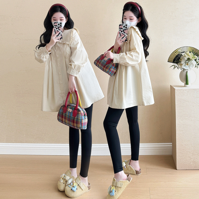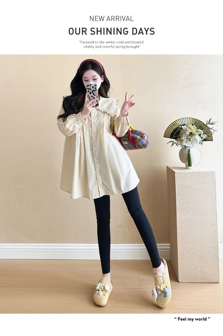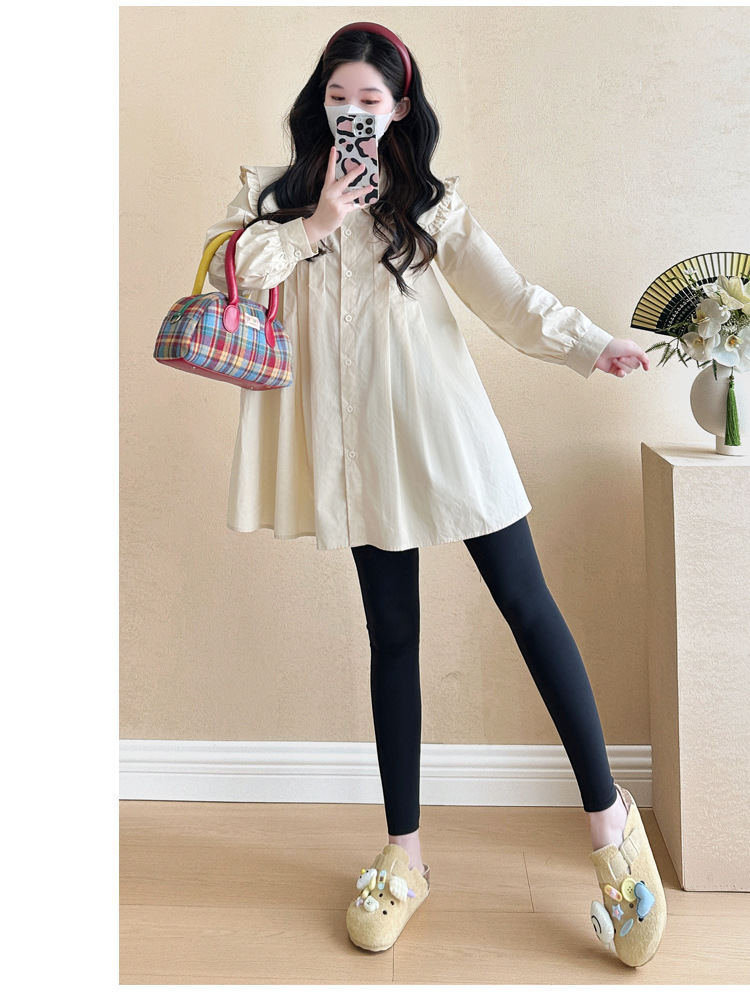 Модная и стильная рубашка-бэбидолл для беременных с длинным рукавом, средней длины, весна 2025 года