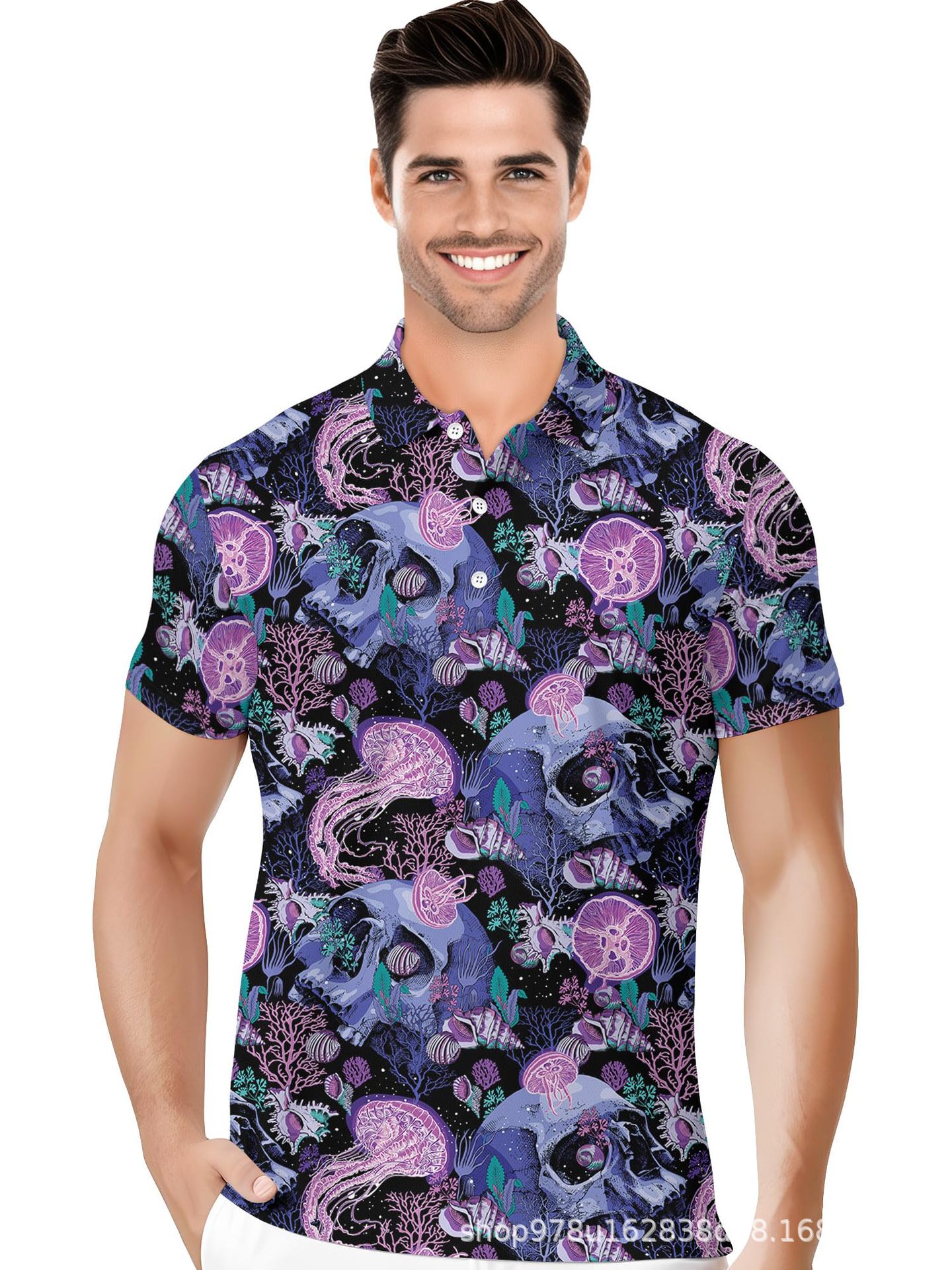 Горячая Распродажа Трансграничный европейский код 3D цифровая печать летняя печать пуговиц с короткими рукавами для мужчин и женщин рубашки POLODIY