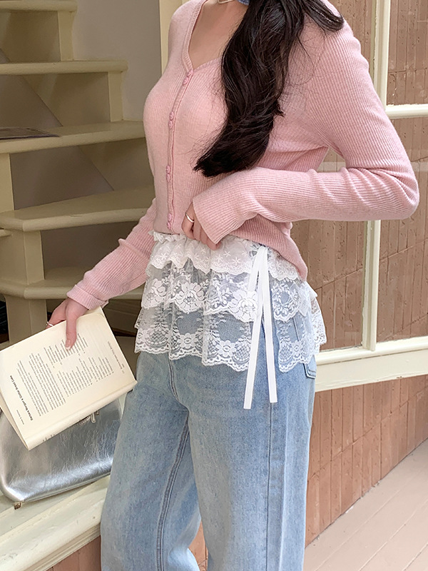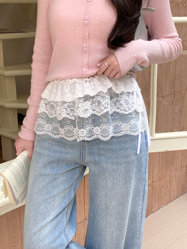 K-стиль Dongdaemun 202, весенне-летняя юбка, новая тяжелая промышленность, кружевной ремень, нейлоновая кружевная занавеска, юбка А-силуэта