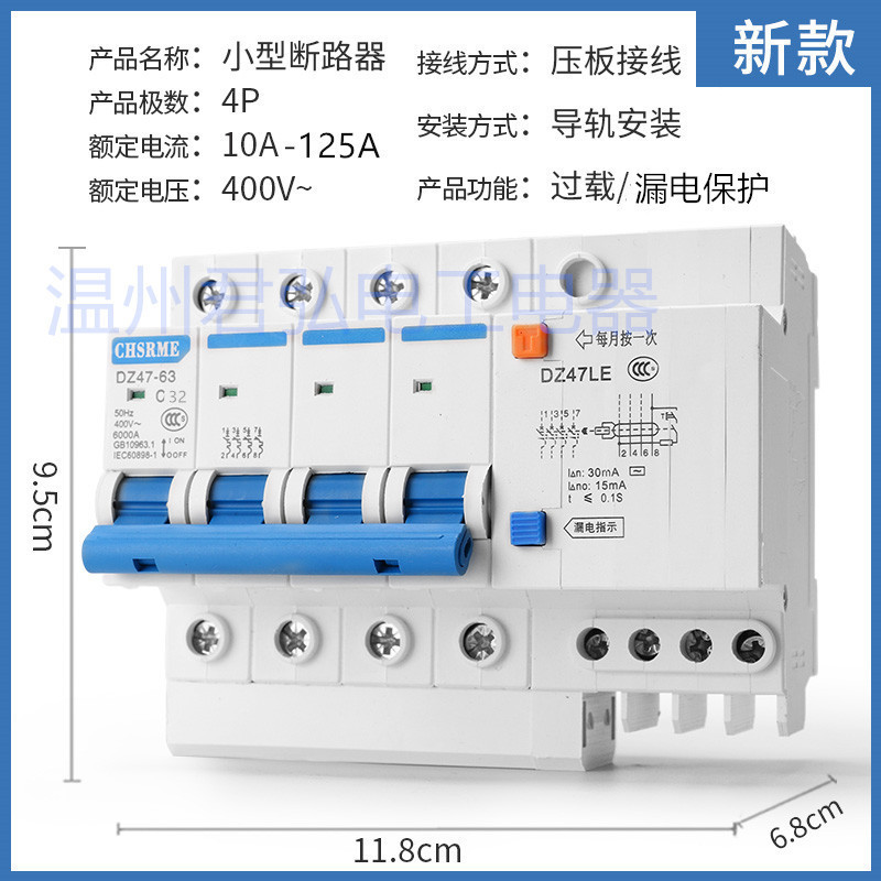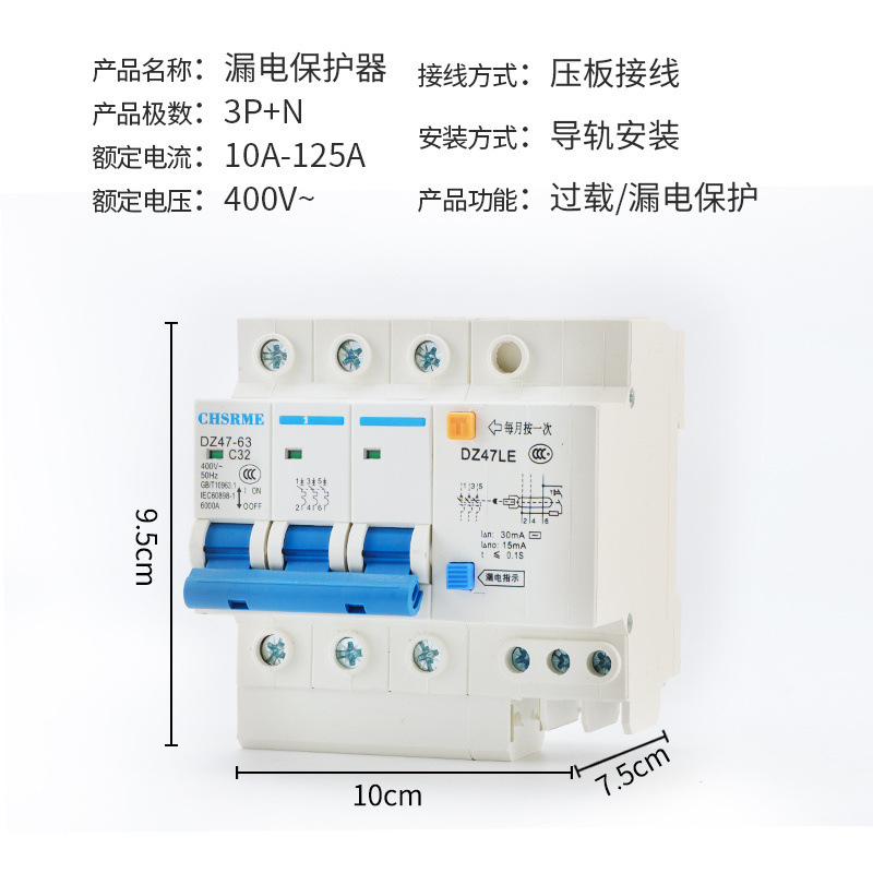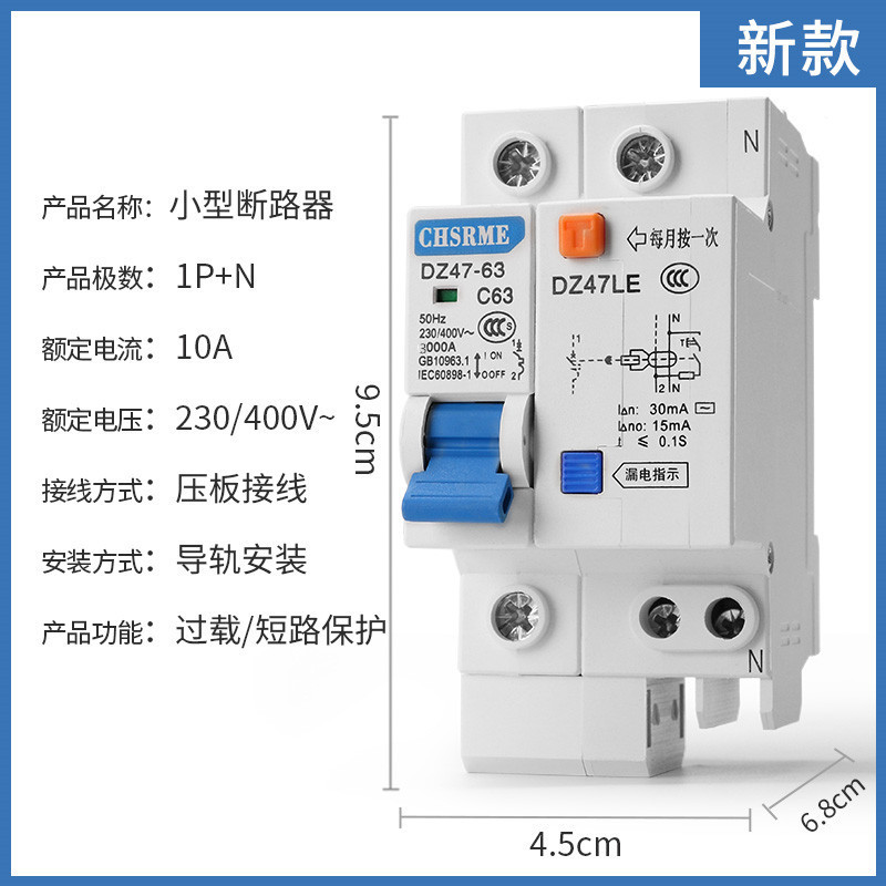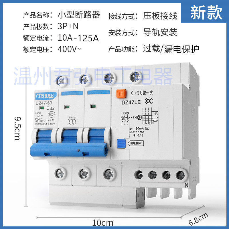Небольшой автоматический выключатель утечки DZ47LE-63/1P+N/2P/3P+N4P Воздушный выключатель Защита от утечки Выключатель утечки