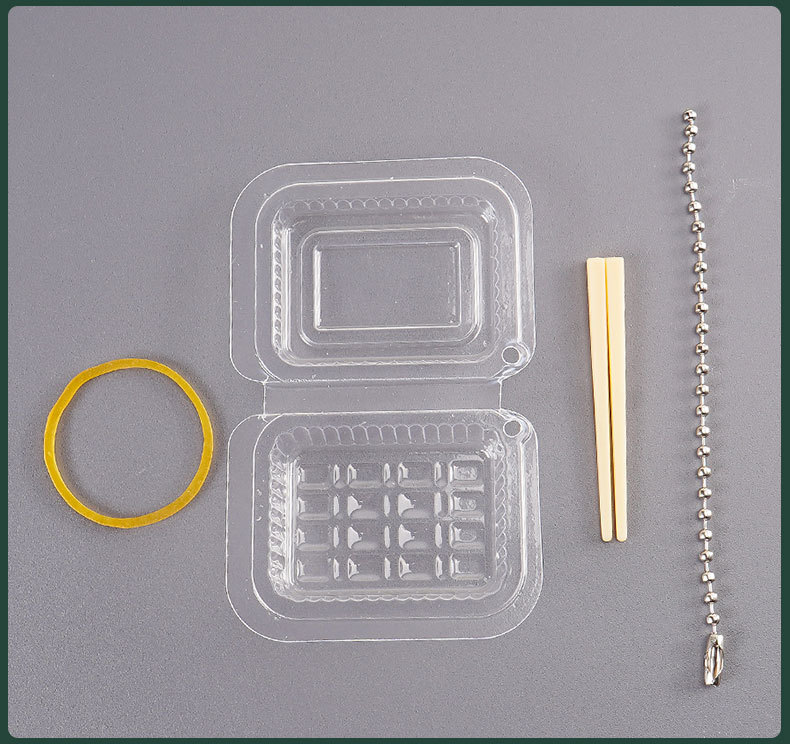 01#Коробка для фастфуда + палочки для еды + резинка + цепочка; 02#Коробка для фастфуда + палочки для еды + резинка; 03#Пустая коробка для фаст-фуда; 04#Условия цветовой цепочки (случайные цвета)