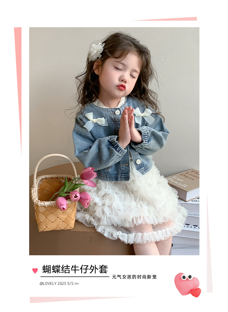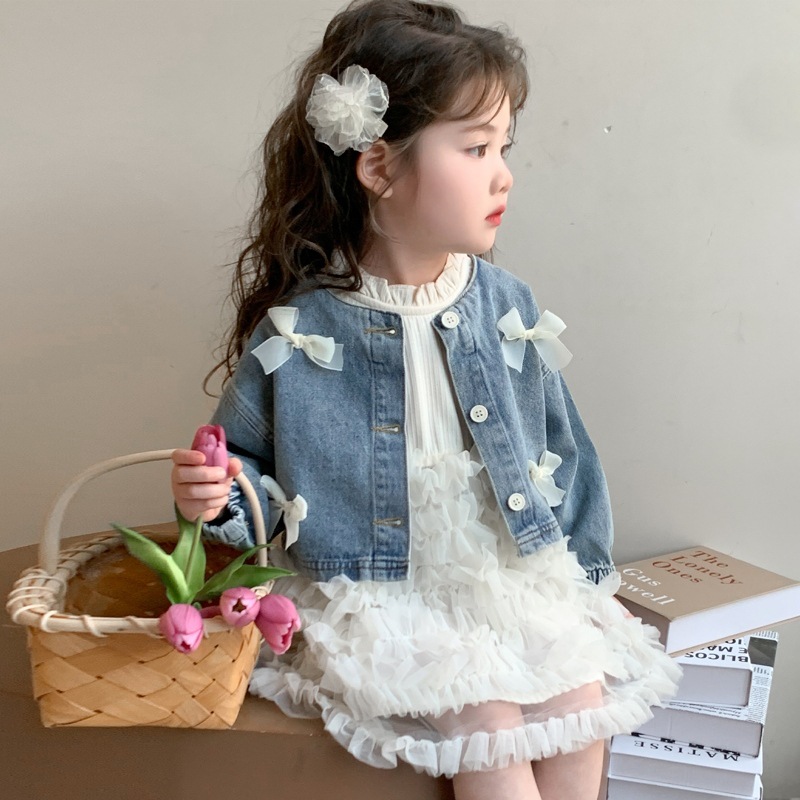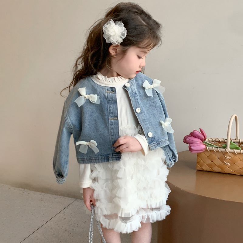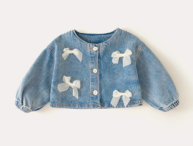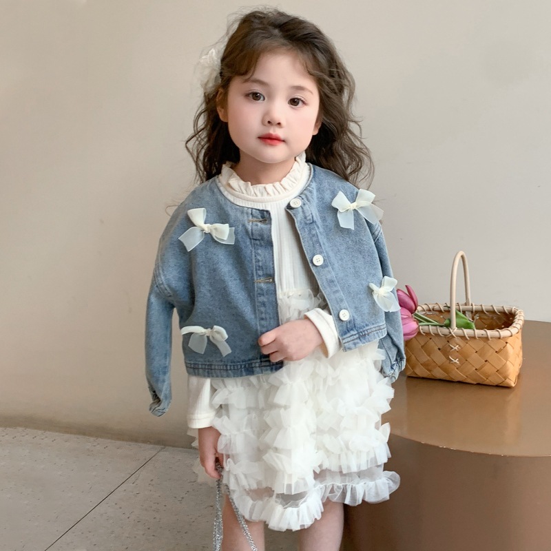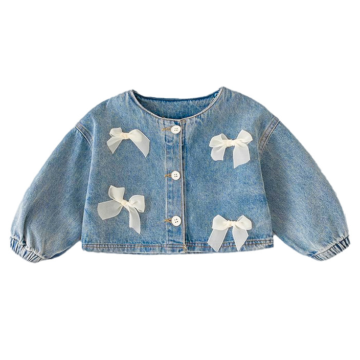 Весеннее джинсовое пальто для девочек 2025 новый детский навесной дикий топ весна и осень модная маленькая девочка