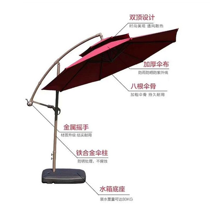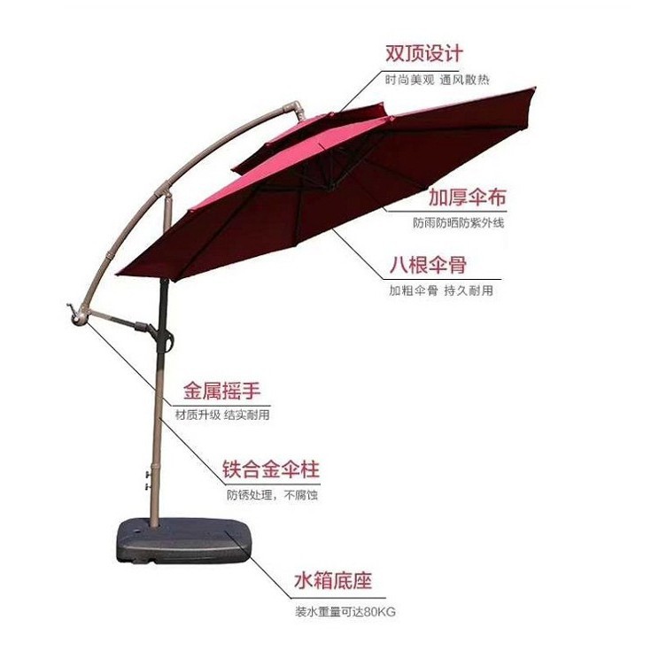 2.7m зеленый зонтик-банан с двойным верхом из железа + большой резервуар для воды; 2.7m железный зонтик-банан с двойным верхом, кремового цвета + большой резервуар для воды; 2.7m железный зонт с двойным верхом и красным бананом + большой резервуар для воды; 2.7m железный зонтик-банан цвета хаки с двойным верхом + большой резервуар для воды; 2.7m Улучшенная версия железного зонта-банана цвета хаки с двойным верхом + большой резервуар для воды; Усиленный зонт с двойным навесом "Красный Банан" + Большой резервуар для воды; 3m Прочный зонт с двойным навесом "Зеленый Банан" + Большой резервуар для воды; 3m Прочный двойной навесный зонт цвета хаки «банан» + большой резервуар для воды; 3m Железный зонт с двойным верхом цвета слоновой кости + большой резервуар для воды; 3m Прочный двойной навесный зонт бананового цвета с кофейным оттенком + большой резервуар для воды
