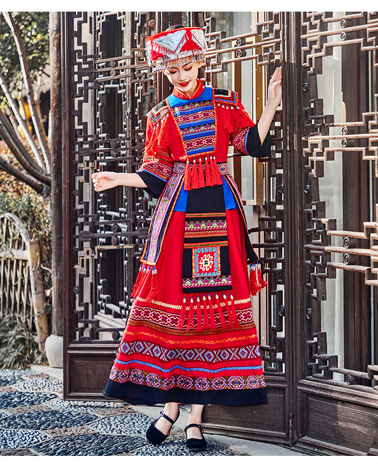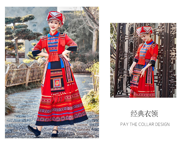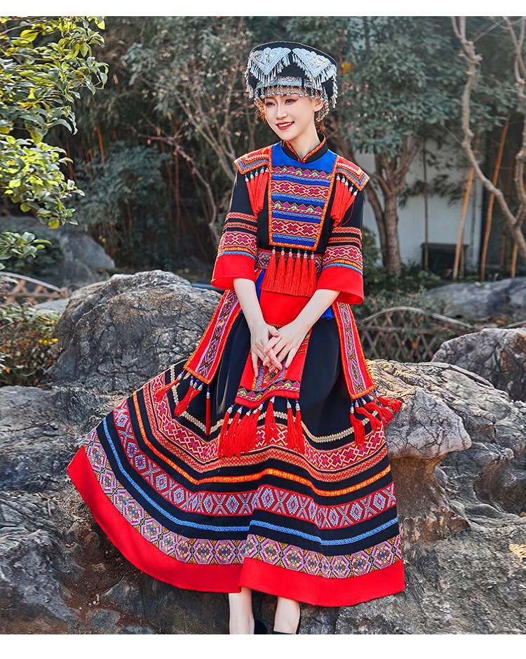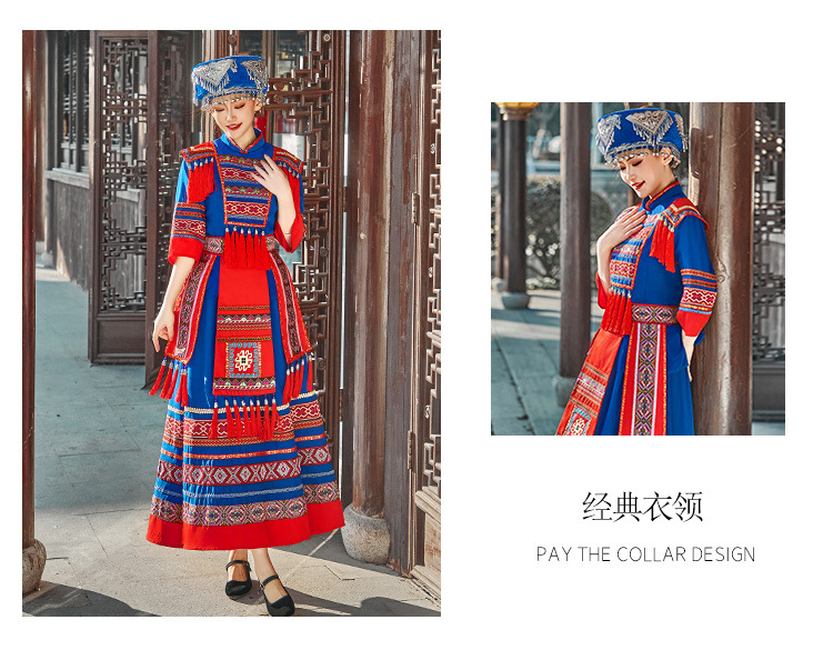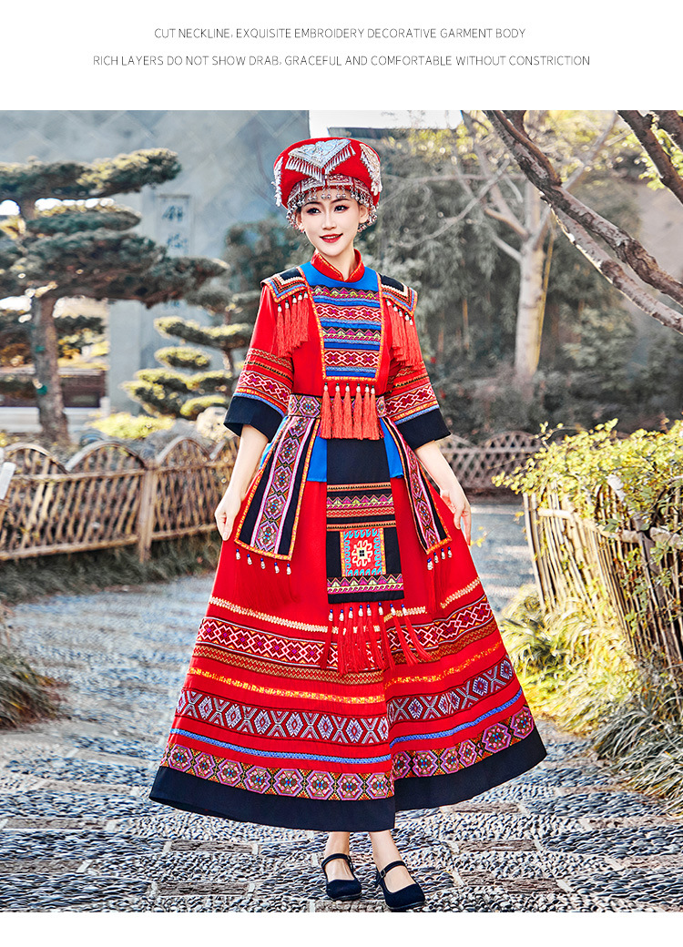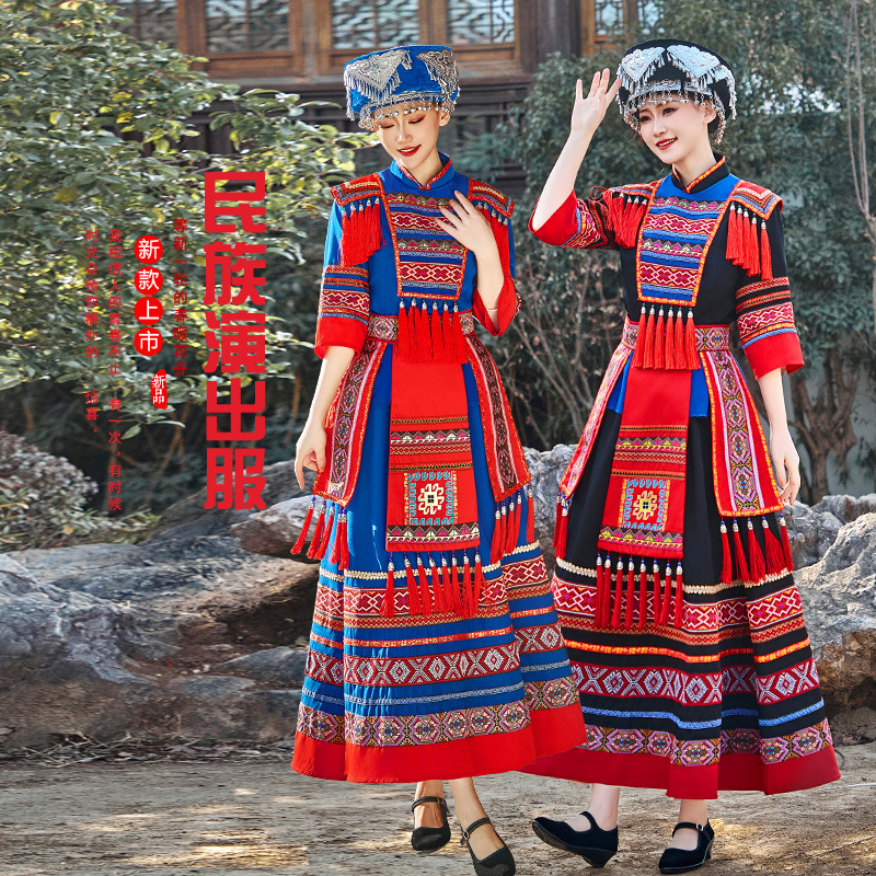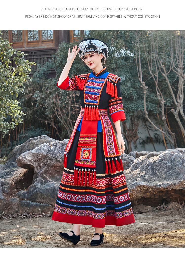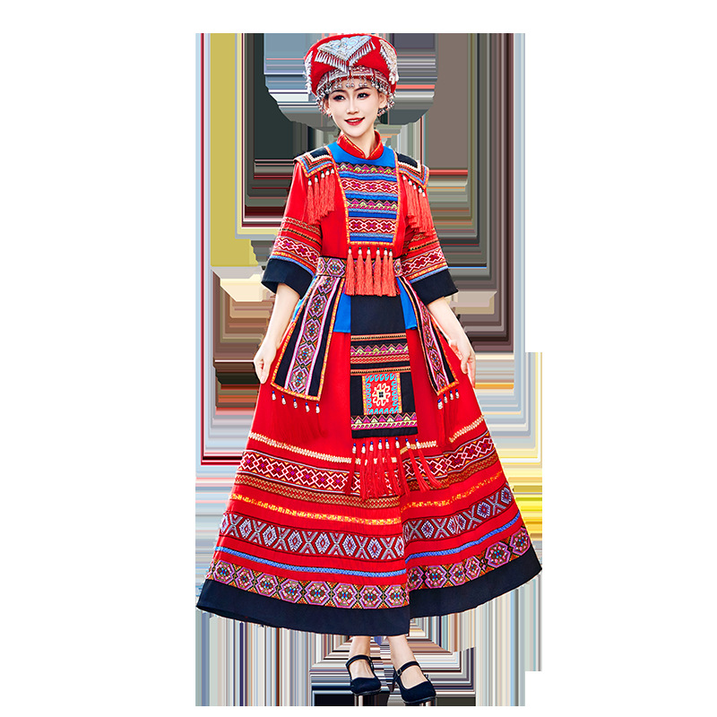 Новый этнический парчовый костюм Guangxi Zhuang, костюм для этнического танца 3 марта для взрослых женщин, сценический костюм.