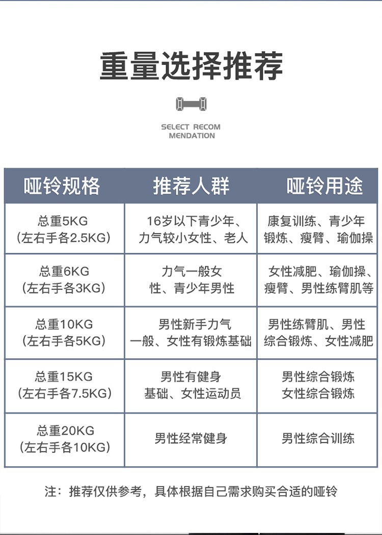 0,5 кг*2 (2 штуки весят 1 кг); 1 кг*2 (2 штуки весят 2 кг); 1,5 кг*2 (2 штуки весом 3 кг); 2 кг*2 (2 штуки весят 4 кг); 2,5 кг*2 (2 штуки весом 5 кг); 3 кг*2 (2 штуки весят 6 кг); 4 кг*2 (2 штуки весят 8 кг); 5 кг*2 (2 штуки весят 10 кг); 6 кг*2 (2 штуки весят 12 кг); 7 кг*2 (2 штуки весят 14 кг); 8 кг*2 (2 штуки весят 16 кг); 9 кг*2 (2 штуки весят 18 кг); 10 кг*2 (2 штуки весят 20 кг)