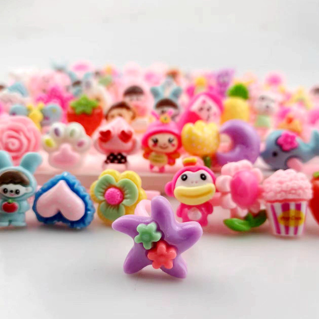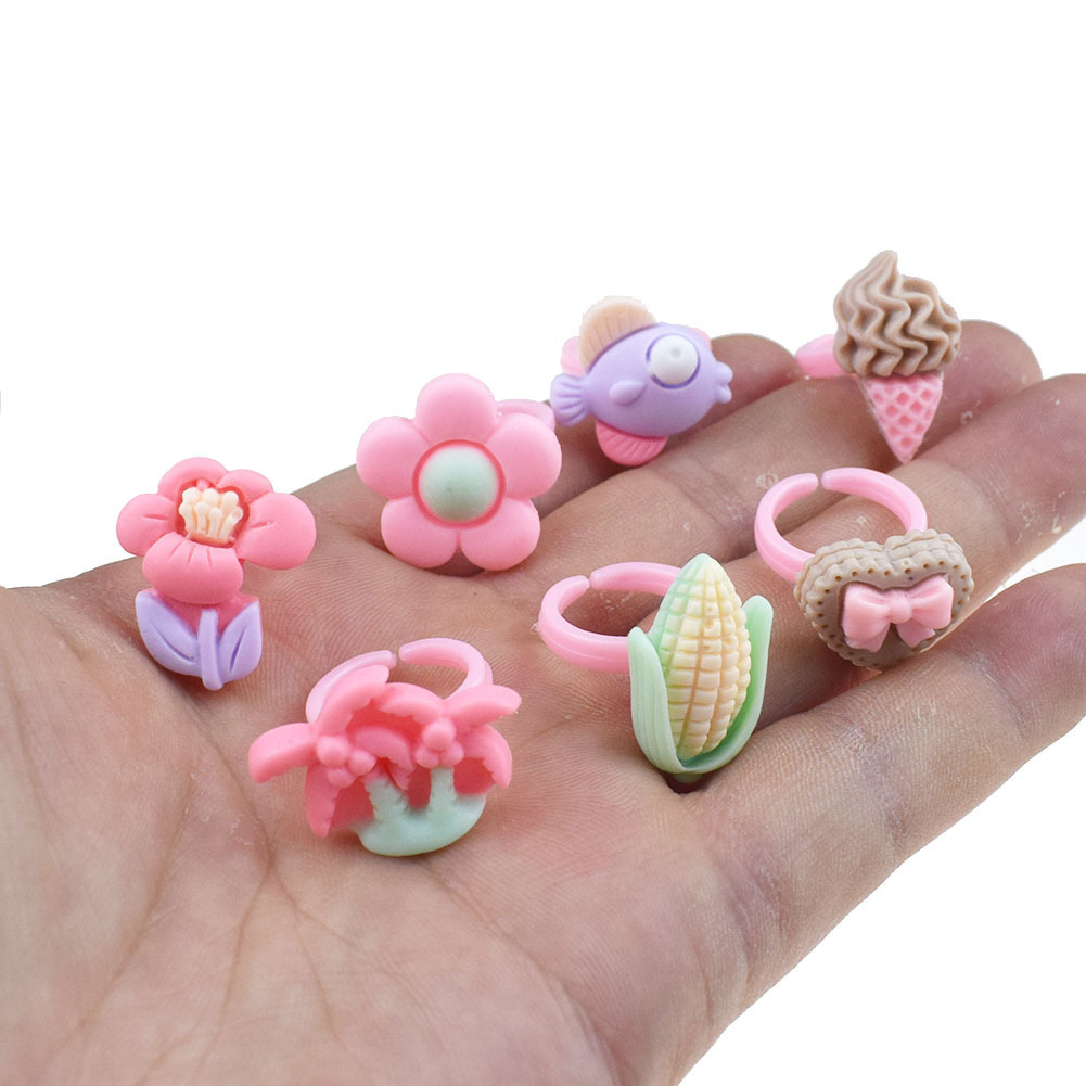 Маленькое матовое кольцо для девочек; Кольцо с фруктами и овощами для девочек; Маленькое кольцо в стиле торта для девочек; Прозрачное маленькое кольцо для девочки.; Однотонное кольцо с рисунком для девочек