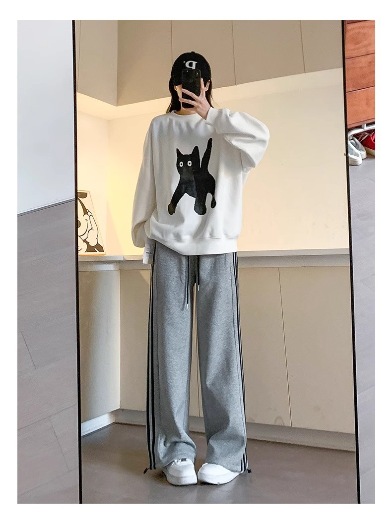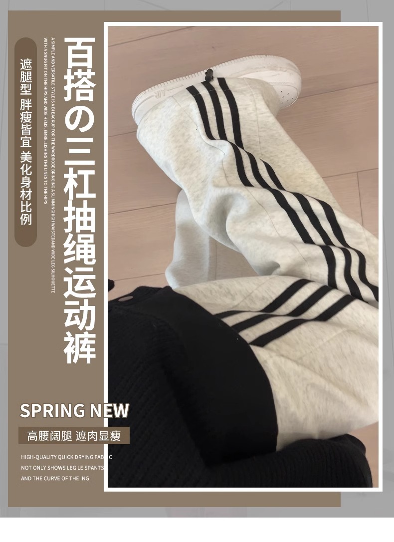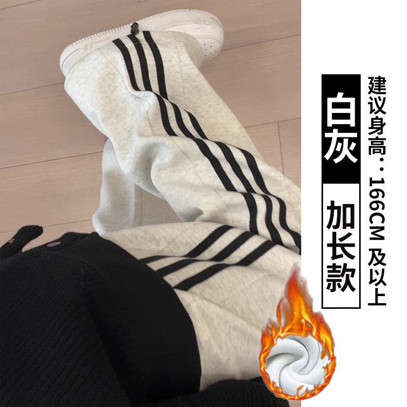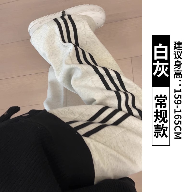 Женские толстые бело-серые спортивные штаны на флисовой подкладке, весна-осень, прямые широкие брюки для миниатюрных женщин, свободные полосатые джоггеры.