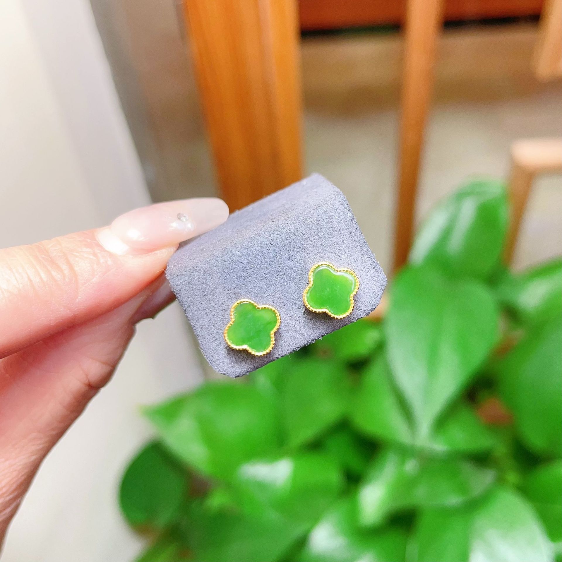 Свежий натуральный Hedian яшма четыре клеверные серьги s925 серебряный темперамент высокий элегантный элегантный дамы великолепные серьги