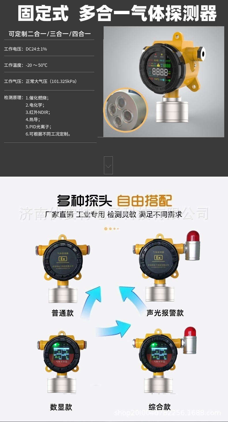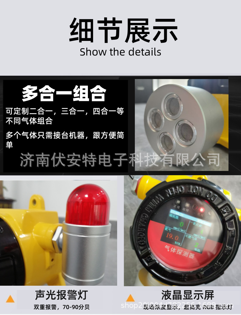 Комплексная модель «четыре в одном» (O2+CO+EX+H2S); 1 хост + 1 датчик «четыре в одном» (O2+CO+EX+H2S); Комплексная модель «два в одном» (кислород + горючее); Комплексная модель «два в одном» (кислород + SF6); Комплексная модель «два в одном» (CO2+CO); Портативный «четыре в одном» (O2+CO+EX+H2S); Другие комбинации газов могут быть настроены по индивидуальному заказу.
