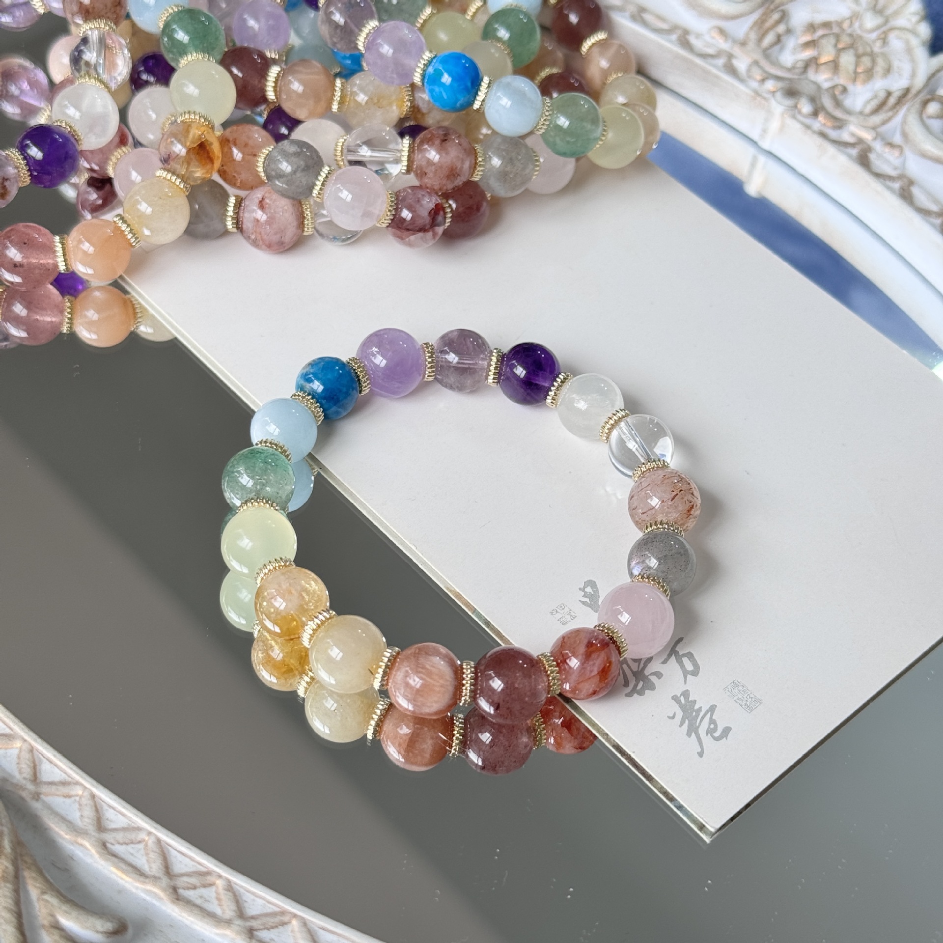 Радуга Дуобао Природный Кристалл Фиолетовый Ассе Желтая Башня Кристалл Солнечный Камень Черное Золото Супер Море
