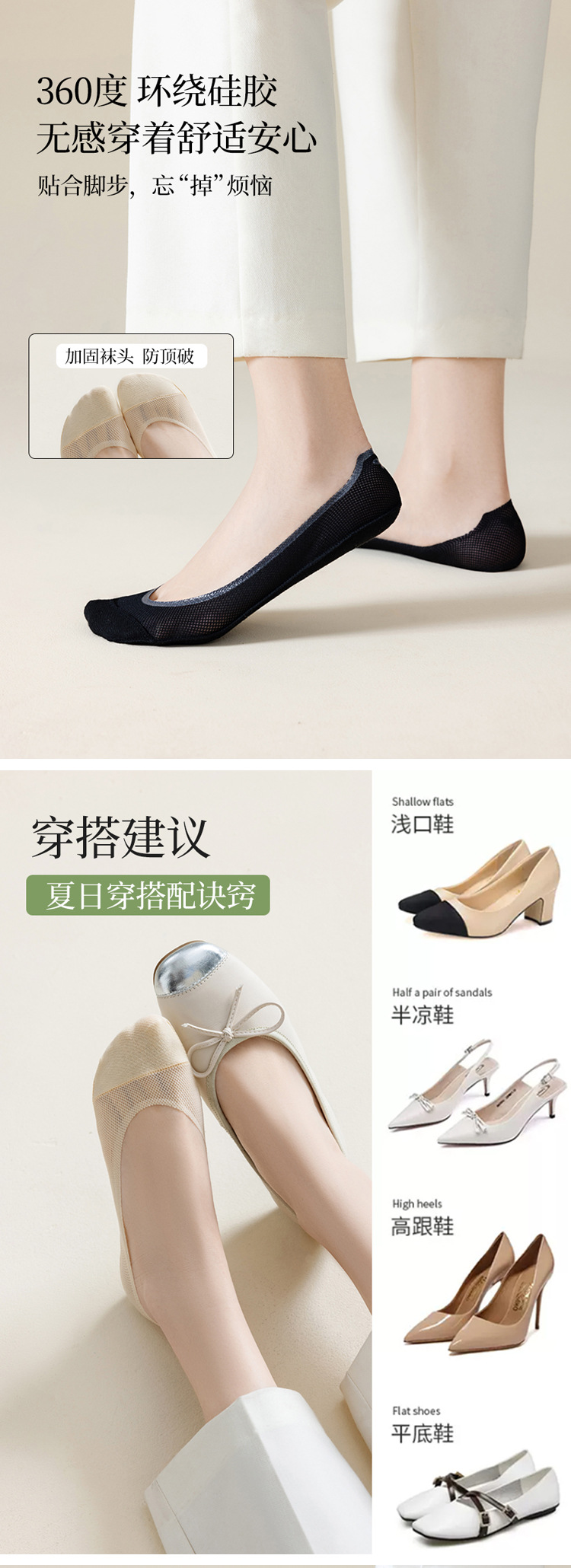 Носки с защитой от поломки летом тонкие неглубокие невиданные носки силиконовые нескользящие носки с каблуками повседневные сетчатые дышащие носки